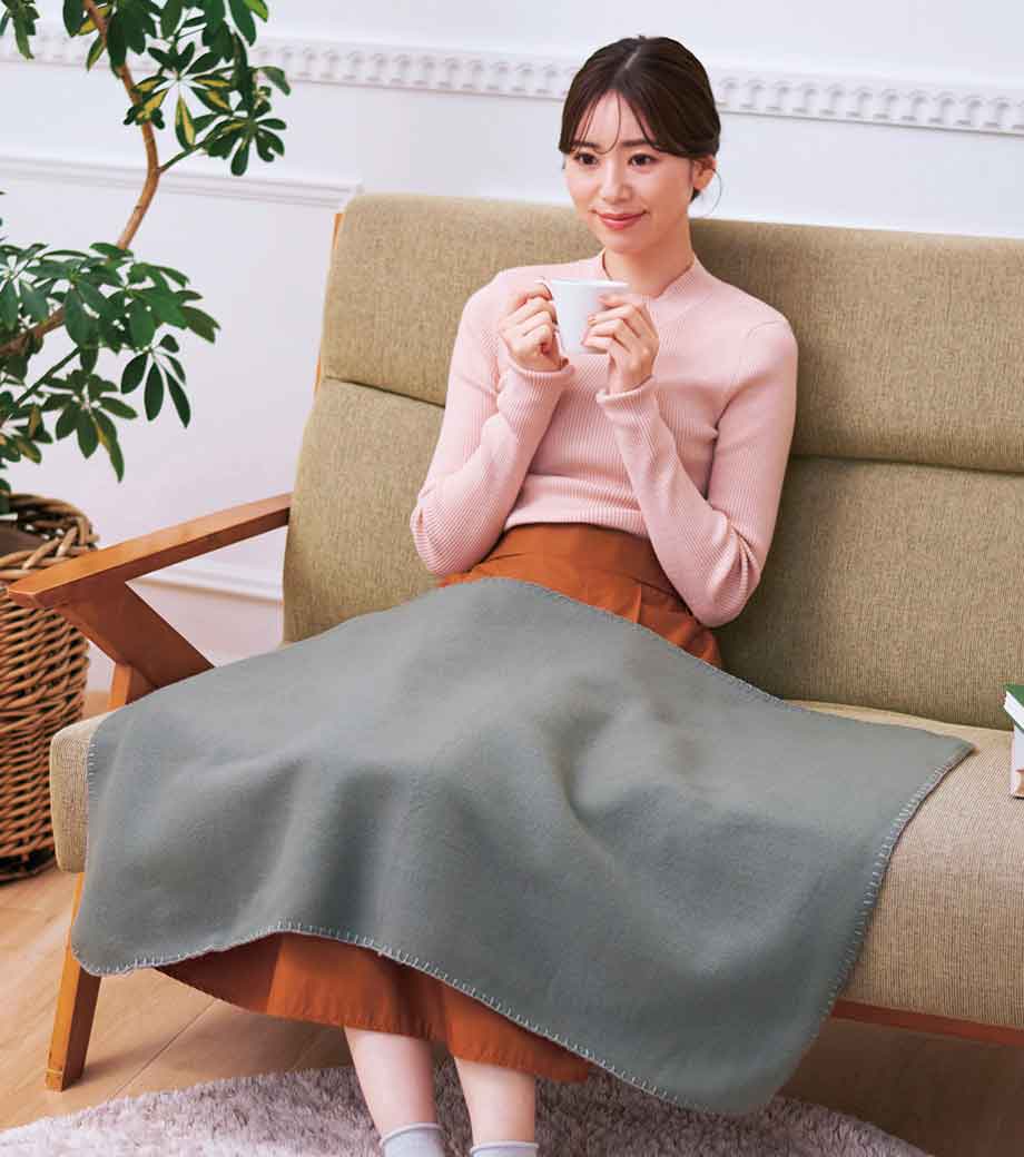 ソフトタッチブランケット(S)は触り心地の良いひざ掛けサイズのブランケット。縦向きにすると、お腹からひざ下まで暖められるコンパクトなサイズです。