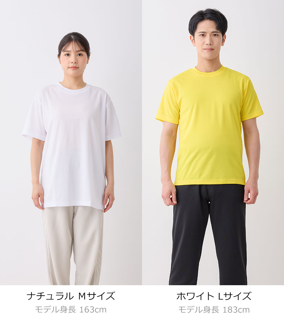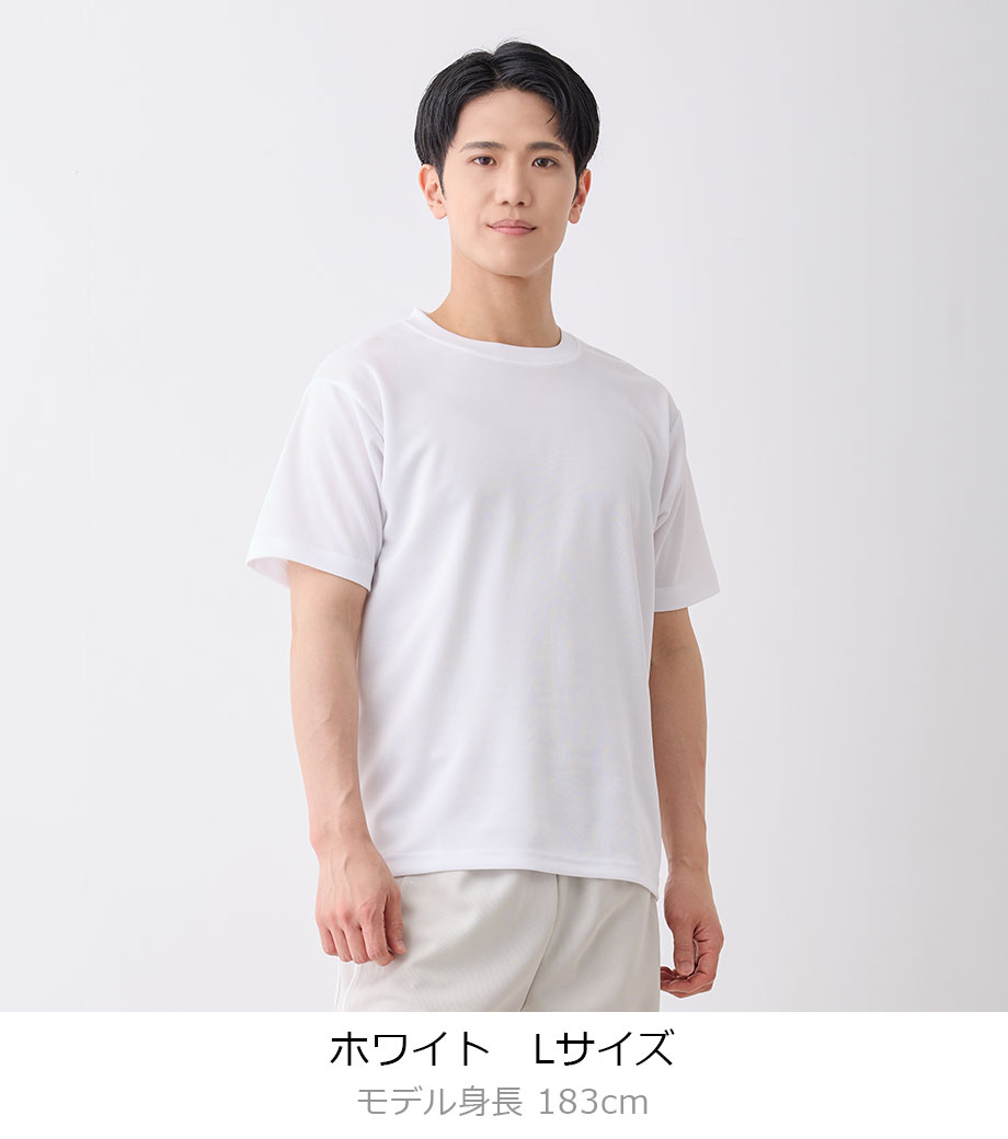 オリジナルのプリントができる、吸汗性・速乾性に優れたTシャツです。UVカット効果を備えているので、屋外イベントでも安心。ポリエステル100%のメッシュ素材を使用し、サラッとした軽い着心地が魅力です。