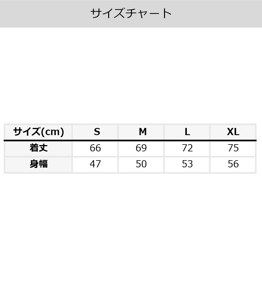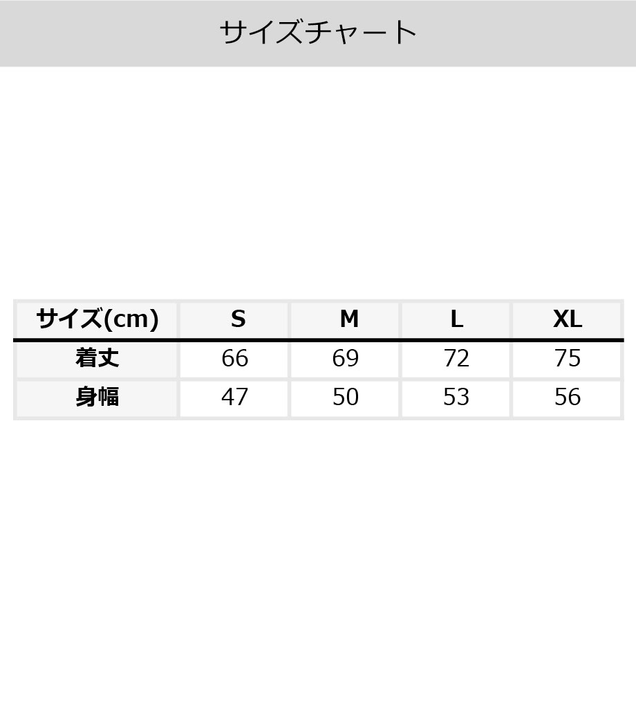 - Tシャツにおいてサイズに表記されている各種言葉の一般的な意味は下記となります。