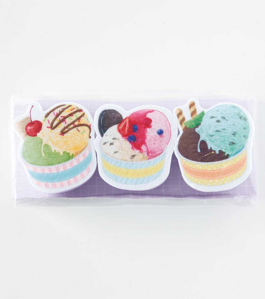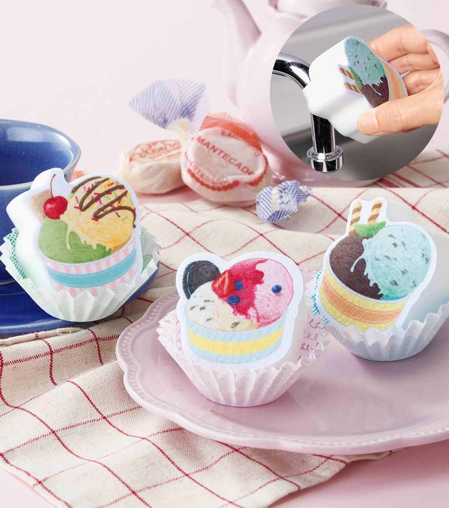 カラフルなカップアイスがデザインされたメラミンスポンジです。水だけで汚れが落ち、キッチンや洗面台など水回りのお掃除に大活躍!洗剤不要なのでエコにも繋がります。