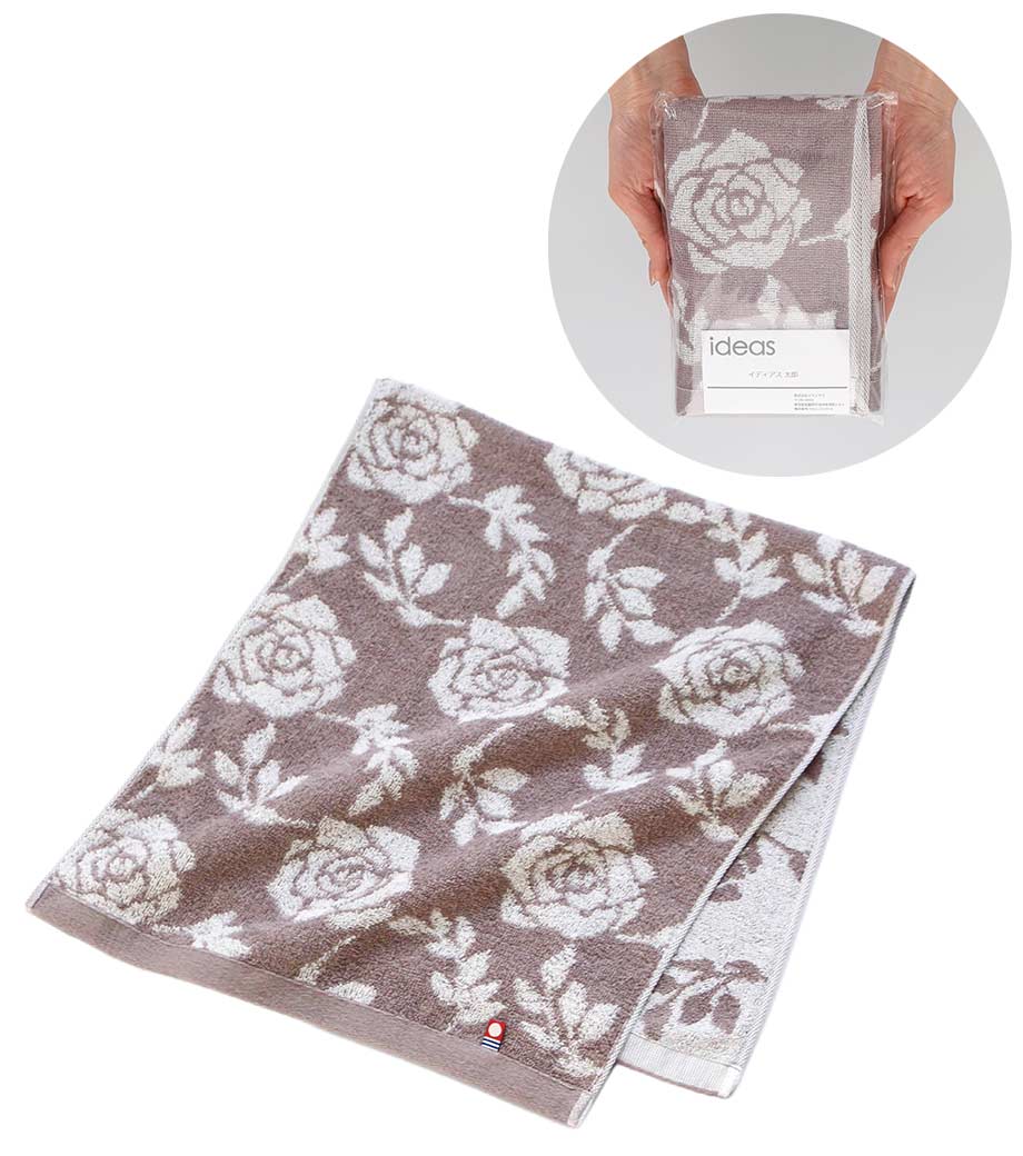 優雅なバラ柄が印象的な、今治産フェイスタオル。丁寧に織り上げられたタオルは、肌にやさしく、使うたび心地よさを感じられます。品質とデザインを兼ね備えた一枚です。名刺や広告を入れられるアドポケットが付いた袋入り。ご挨拶やお礼など大切な気持ちを伝える贈り物にもおすすめです。