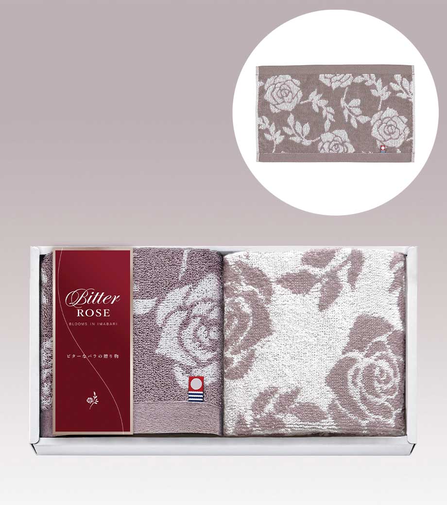 エレガントなバラ柄のハンドタオル2枚セットです。横糸にこだわった製法が光る上品なデザイン。確かな品質の今治産のタオルは、使うたび心地よさを感じられます。真っ白な化粧箱入りです。大切な方へのお祝いや、感謝の気持ちを伝えるギフトにも最適です。