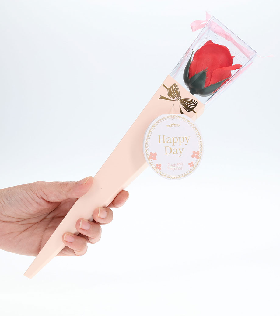 1本のバラを贈るような特別感が魅力の、ブーケ型ミニ入浴剤です。1枚ずつ花びらを浮かべて、フローラルな香りと優雅なバスタイムを演出。シャワーを勢いよく当てれば、バブルバスにもなります。そのまま飾ってインテリアフレグランスにも。