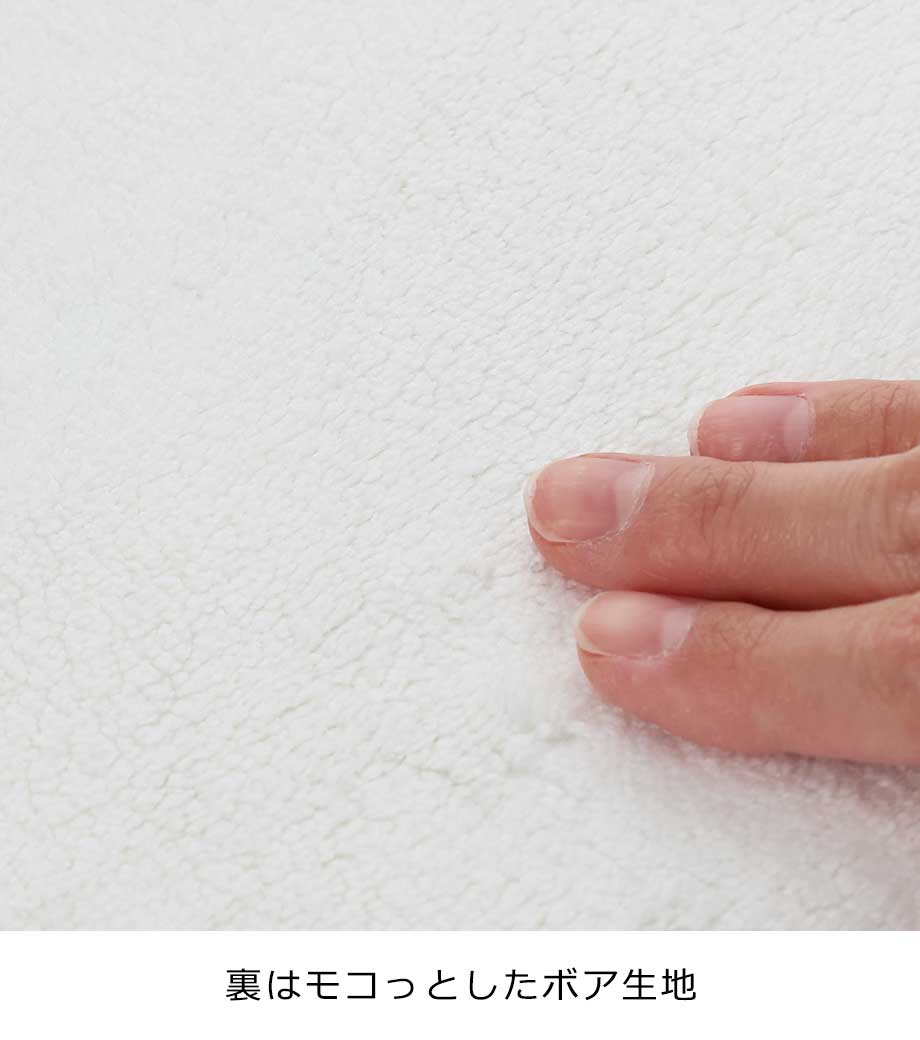 表面はなめらかなポリエステル生地、裏面は羊のようにモコモコしたボア生地を使用しています。すっぽり包まれる大判サイズであたたかさ抜群です。