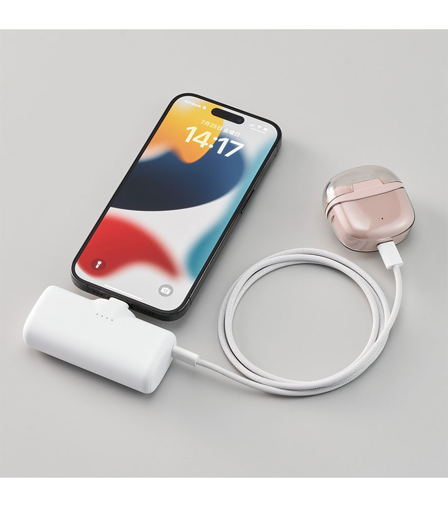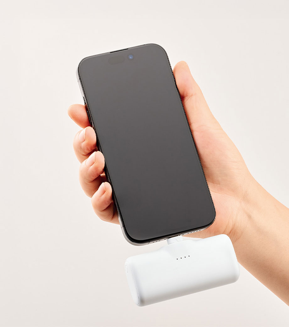 シンプルさと利便性を極めた、Type-C端子一体型のダイレクトチャージャーです。ケーブルいらずでスマートフォンにそのまま直挿ししてスピーディーに充電を開始できます。側面のType-Cポートを使えば、スマホとイヤホンなどの同時充電にも対応。端子部分は折りたたんで収納できるスリムな形状で持ち運びに便利です。