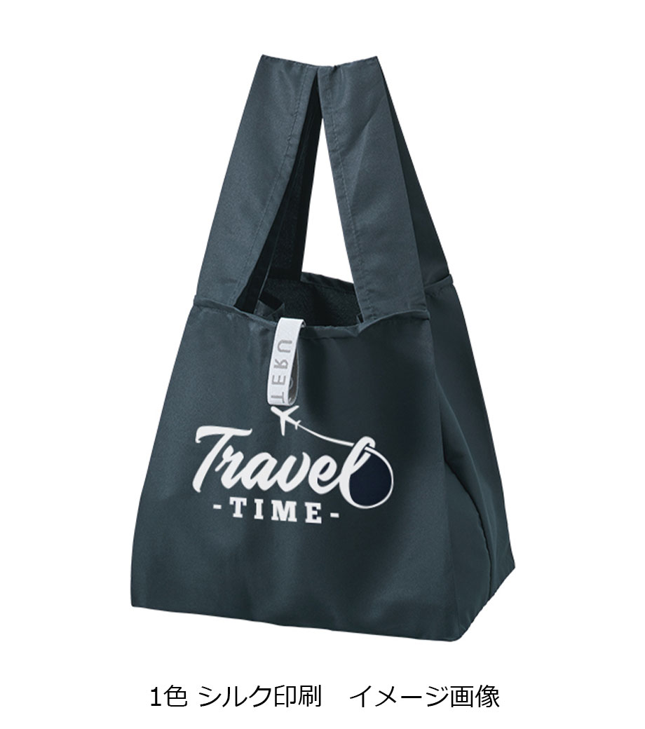 外側ポケット部分に、1色でロゴやショップ名を印刷できます。食料品店のオリジナルグッズやデリのキャンペーンノベルティとして大人気です。
