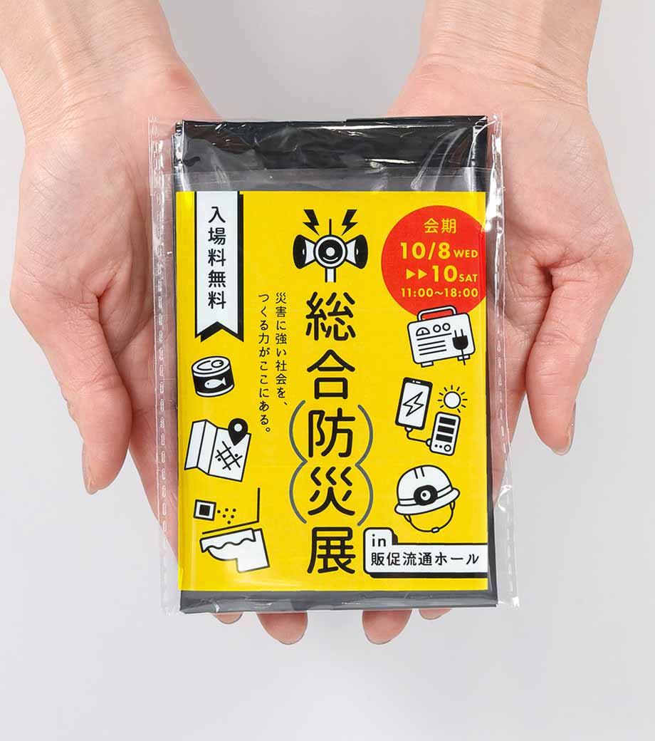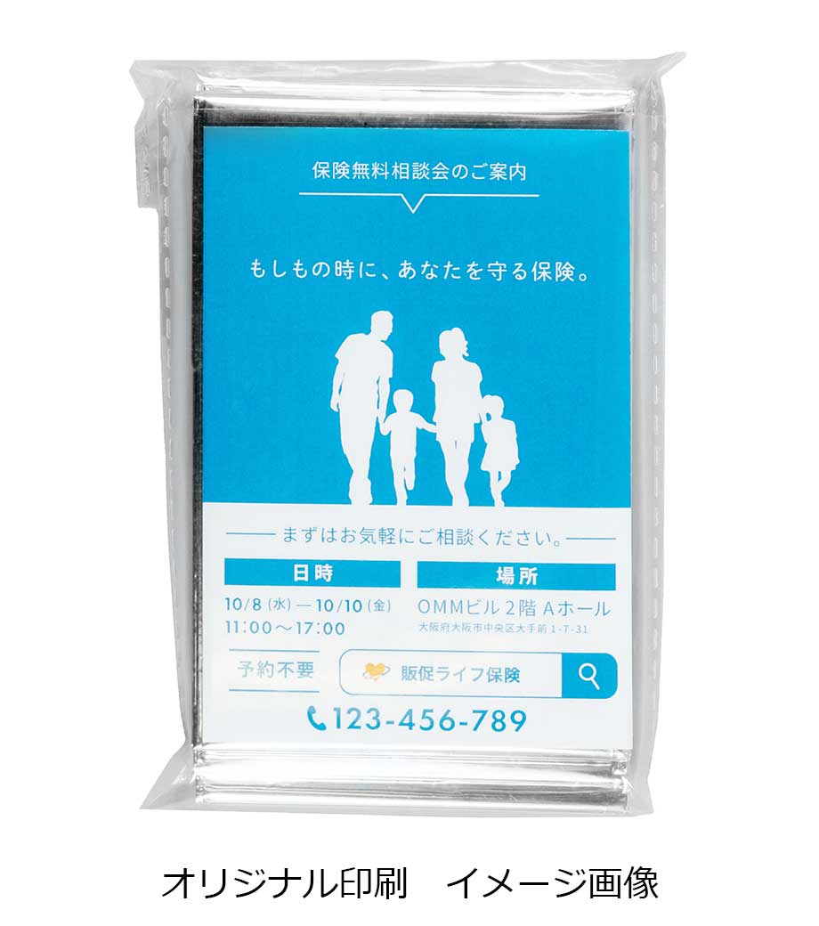 側面には企業ロゴや自治体名を1色印刷で名入れ可能です。地域イベントの参加者に防災ノベルティとして配布したり、車や住宅関連の成約記念品としてプレゼントするのにいかがでしょうか。