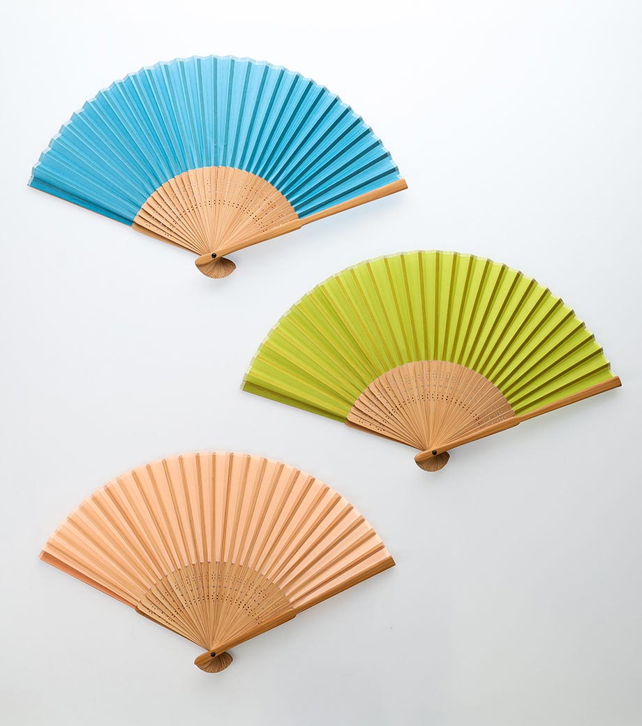 空と雲、山、浜辺、花火、4つのシーンをそれぞれ落とし込んだ4色を取混ぜでお届け。扇子の柄に合わせた化粧箱入りです。インバウンド向けノベルティや、サマーイベントの景品や参加特典などでの配布にいかがでしょうか。