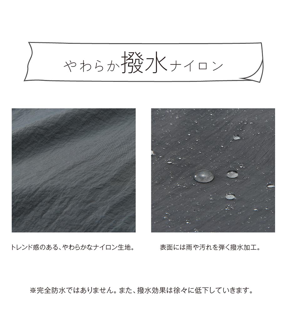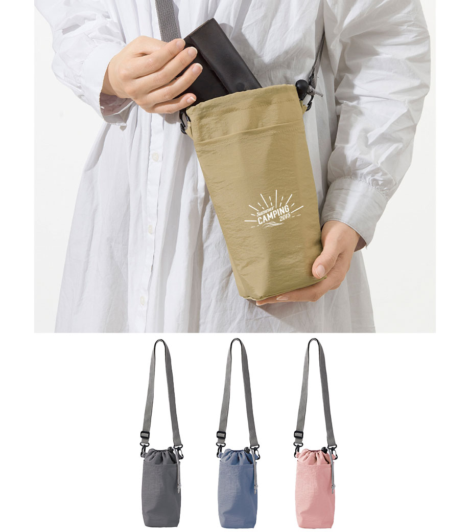 シンプルな無地のデザインで、ロゴマークなどの名入れもよく映えます。使わない時はコンパクトに丸めておけるので、メインバッグの中に入れておいてもかさばりません。