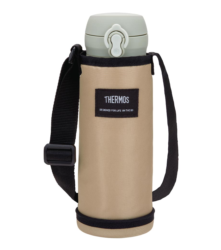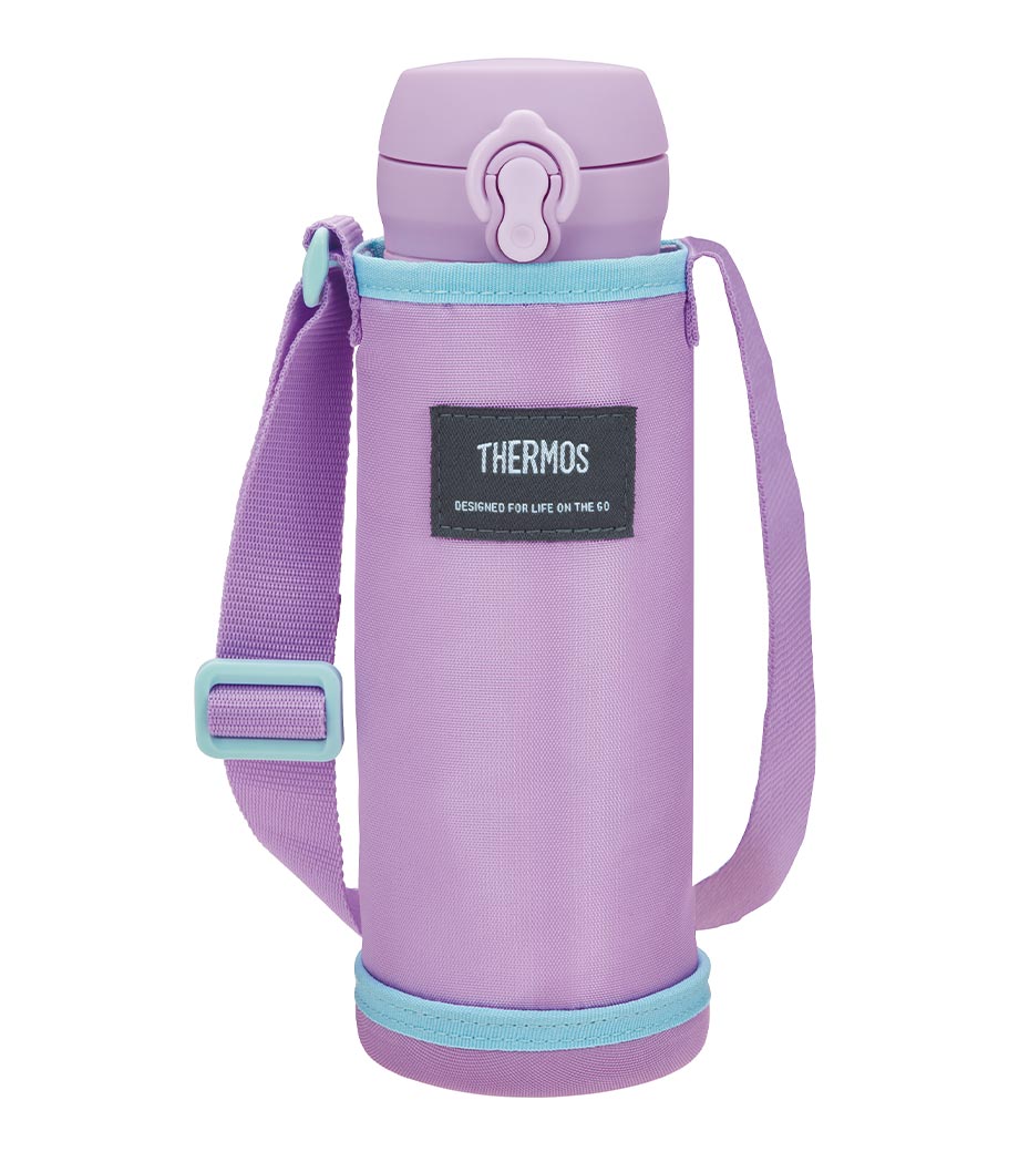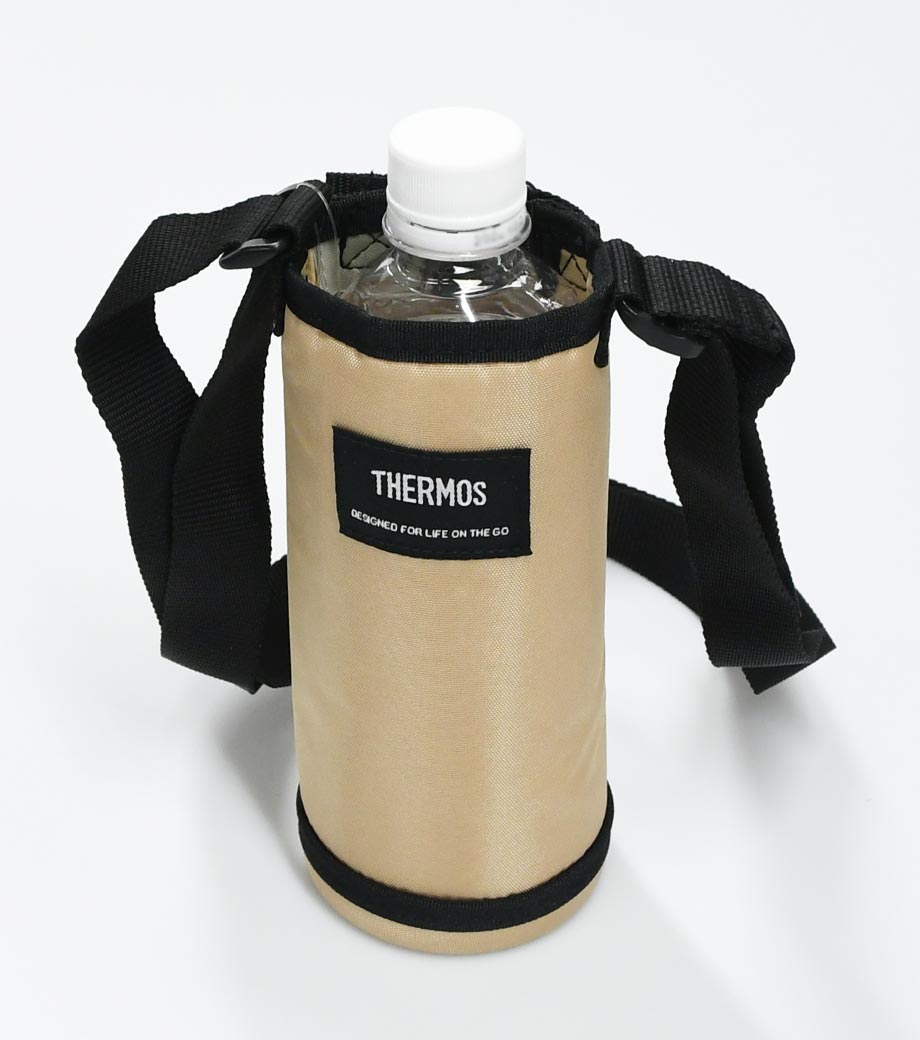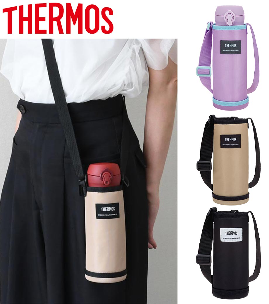 500mlのサーモスケータイマグがぴったり入るボトルポーチ。ショルダーベルトは長さ調整できて斜め掛けもOK!ポーチに入れたまま飲めるから、外出先での水分補給に大活躍します。丈夫な底面で大切なボトルが傷付きにくい設計です。デザインもおしゃれ。ポップなパープルとシックなブラック・ベージュ3色から選べます。内側に名前を記入できるタグ付き。大人からお子様まで幅広い層でお使いいただけます。洗濯機で洗えるのも嬉しいポイントです。