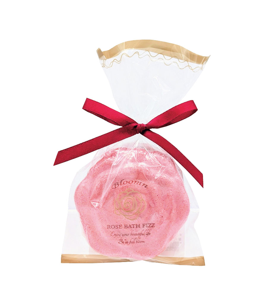 可憐なバラのフォルムが目を引く、手のひらサイズの入浴剤です。パープル、イエロー、ピンク、レッドの鮮やかな4色展開。お湯に入れるとシュワっと溶け出し、日々の疲れを癒やす華やかなひとときを演出します。
