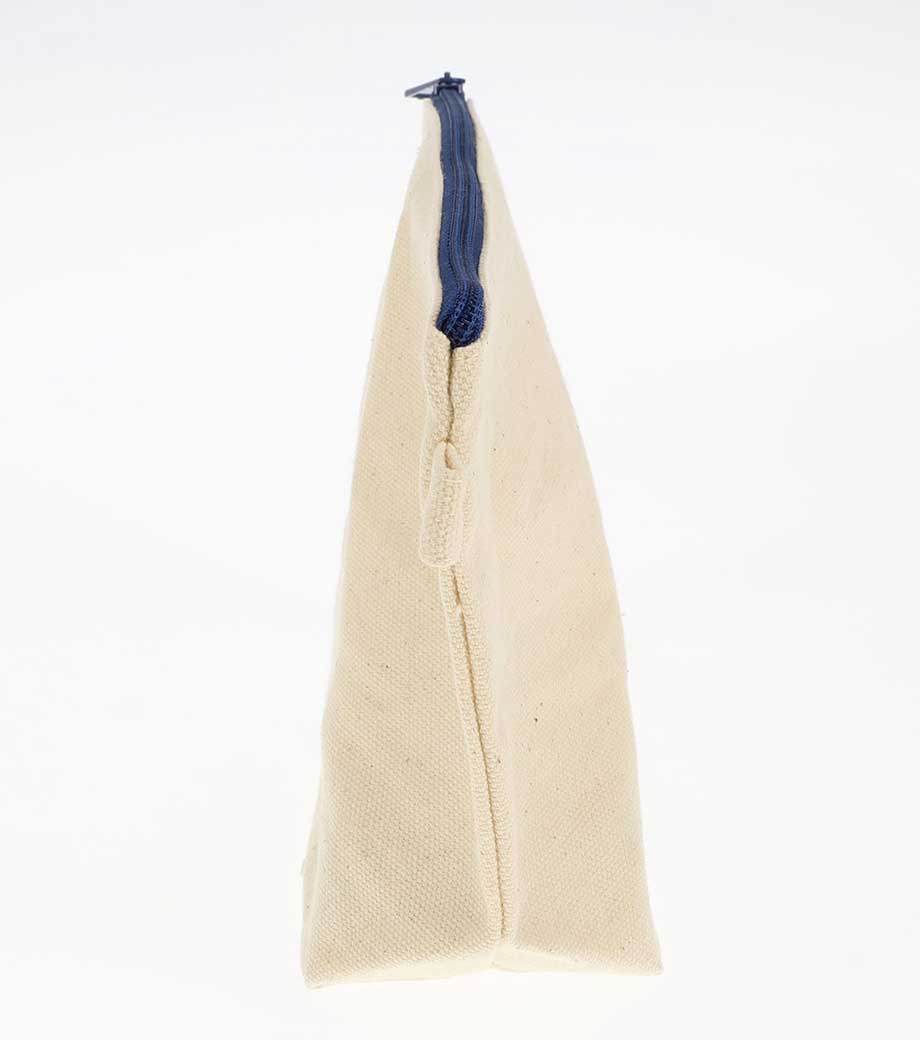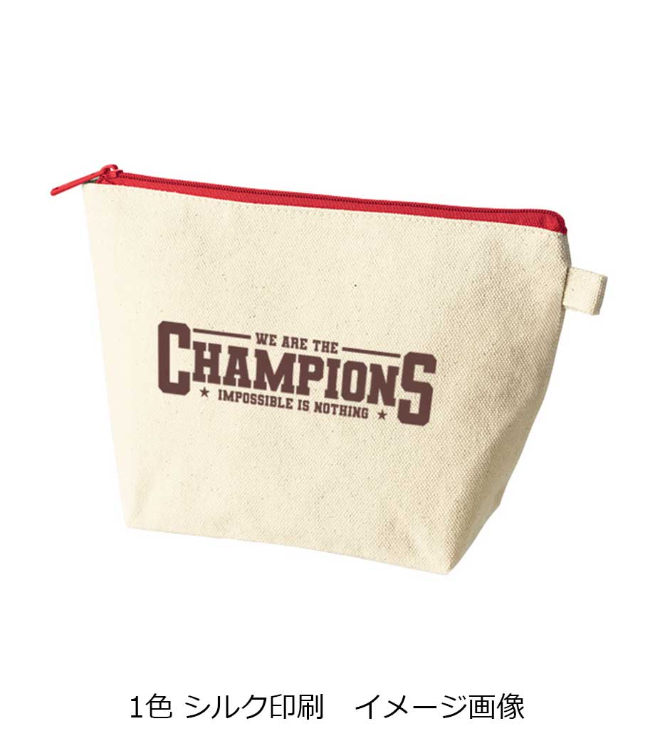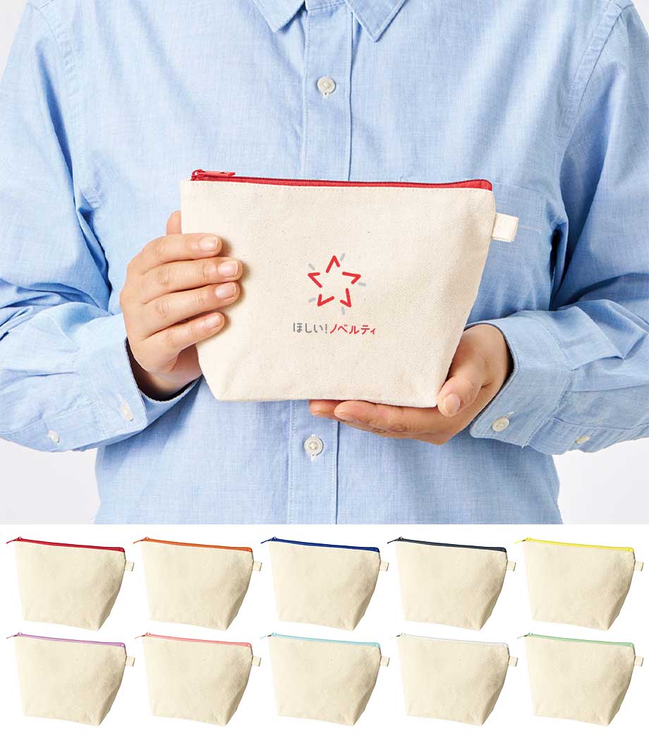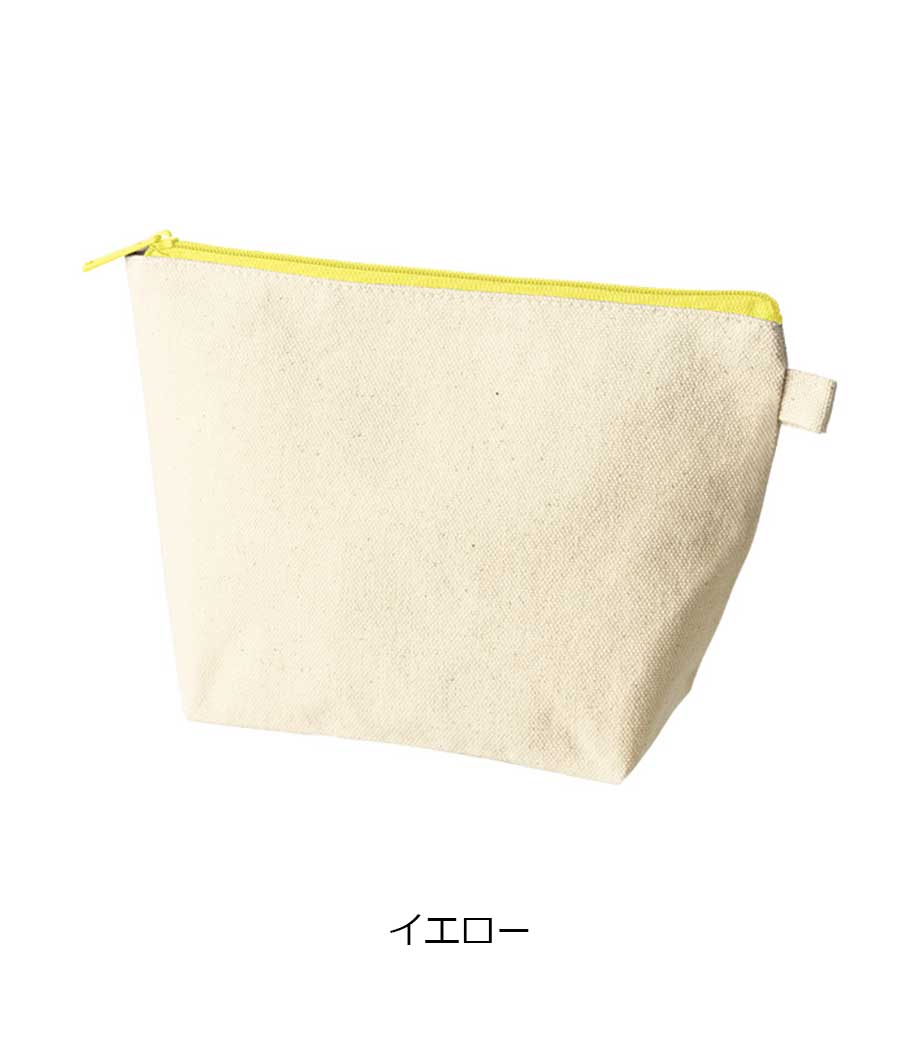 ファスナーの差し色がアクセントになったキャンバスポーチです。マチ付きでしっかり自立する舟形デザインで、コスメや小物をたっぷり収納できる使い勝手の良さが魅力です。サイドループ付きでキーホルダーやチャームも付けられ、アレンジを楽しめます。