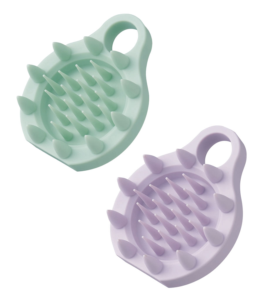 頭皮ケアに使いやすい、やわらかシリコンブラシ。頭皮クレンジングやシャンプー、頭皮美容液の塗布などに使えます。ほどよい弾力でマッサージしながら、すっきりとした洗い心地。フックが掛けられるホール付きなので浴室にも吊るしておけます。優しく押し付ければツボ押しとしても◎。美容やリラックスを意識したノベルティに最適です。