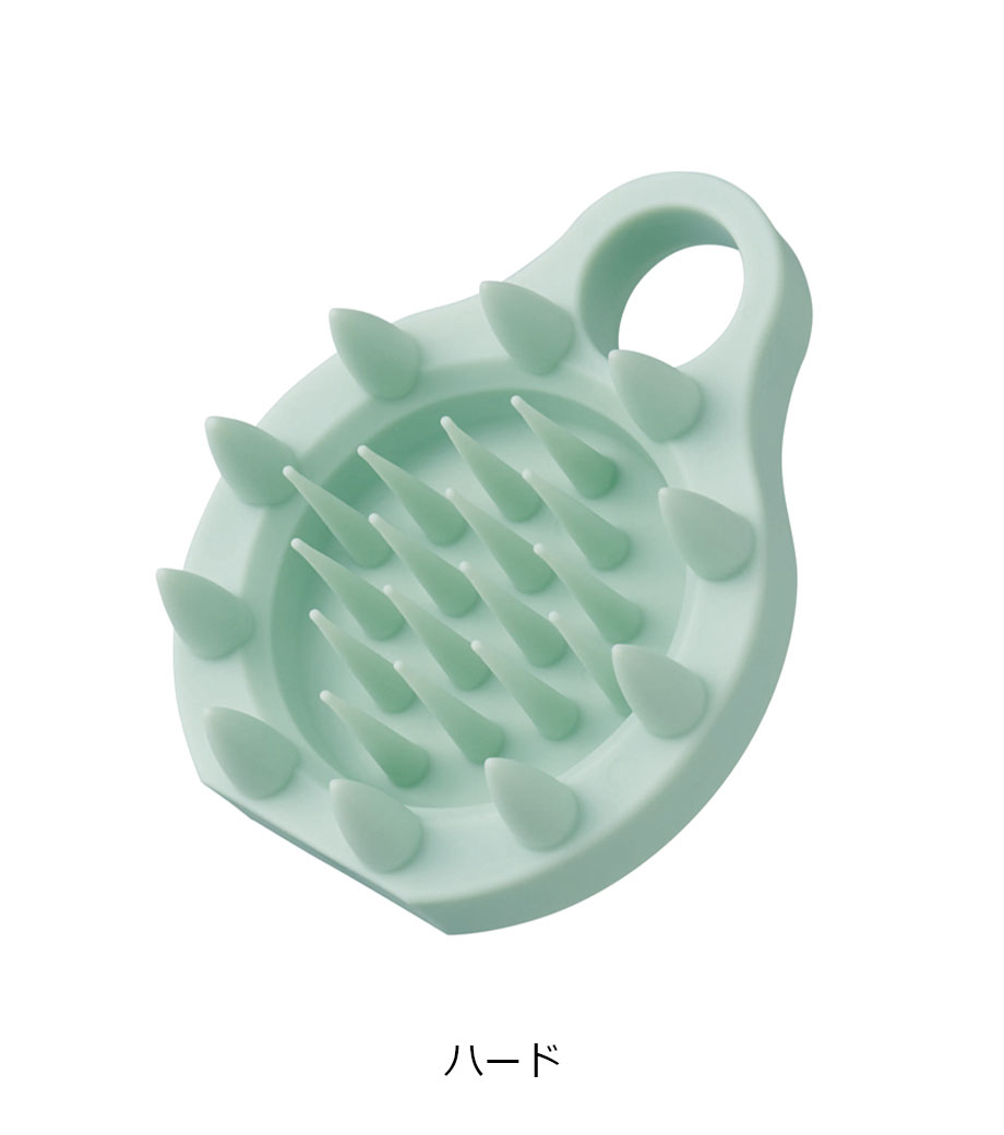 フック穴付きなのでお風呂場に引っ掛けて乾かせるほか、立てて置ける設計も嬉しいポイント。髪質や毛量に合わせて選べるハードタイプとソフトタイプをご用意しています。ロングヘアやボリュームの多い髪にはハード、ショートヘアや柔らかい髪にはソフトがおすすめ。毎日のヘアケアを快適にサポートします。