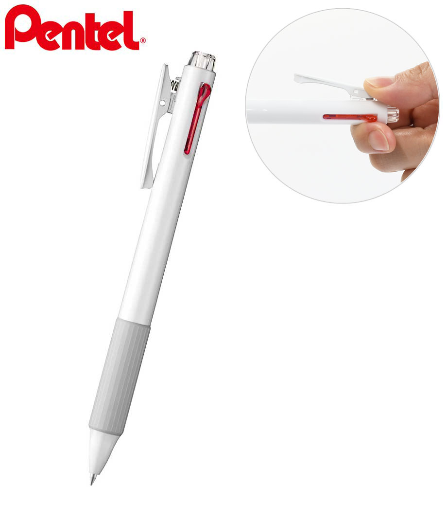 クリップは厚みのあるノートやバインダーに挟んで使える丈夫なコイルスプリング式。インキにはぺんてる独自の技術を使用した「ビクーニャインキ」を搭載。油性インキながらもカスレが少なく、ずーっと書いていたくなるほどなめらかな書き味です。グリップ部は24面カット。スタイリッシュな見た目な上、指にフィットするポジションを見つけやすいデザインになっています。