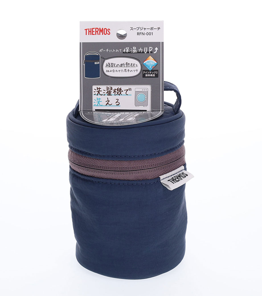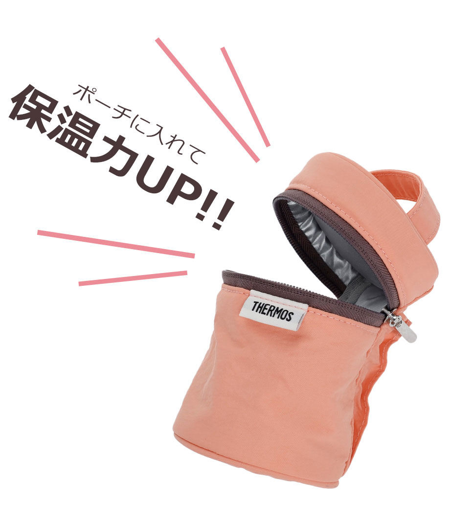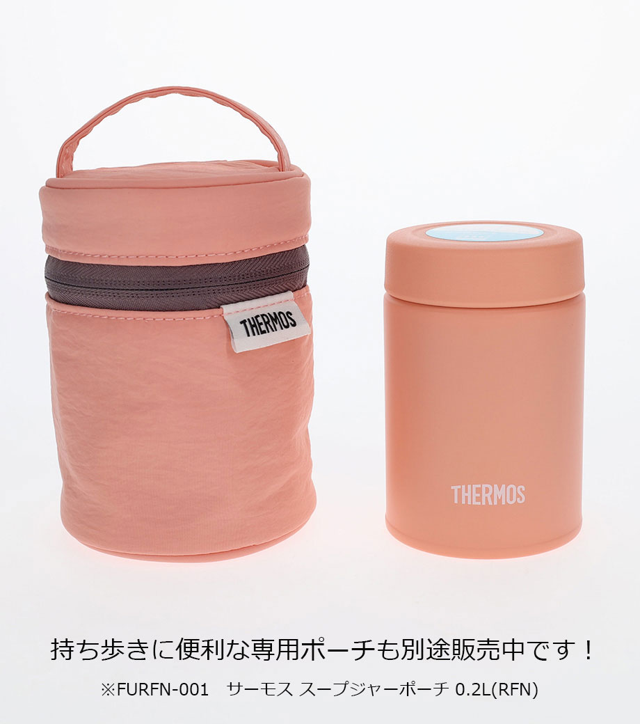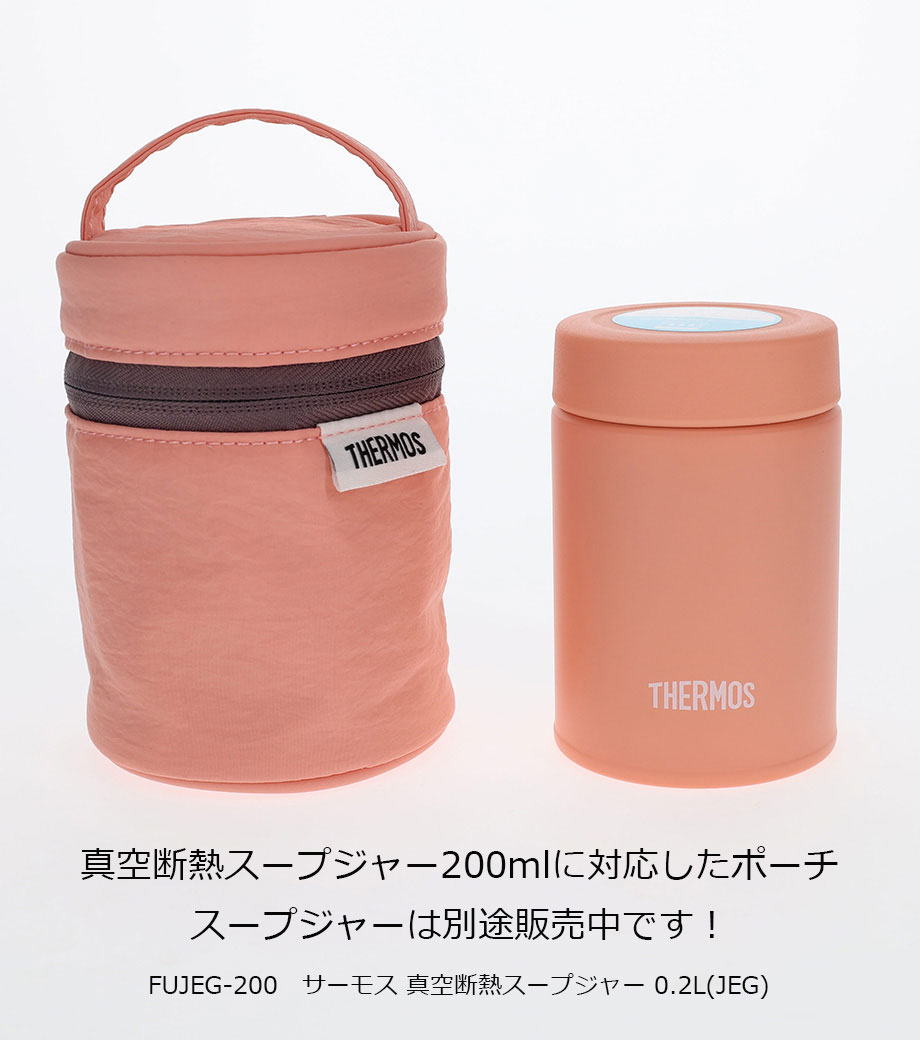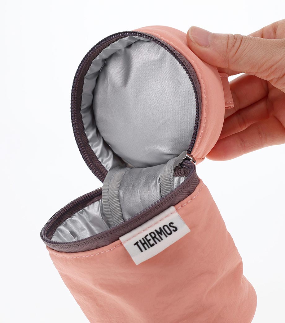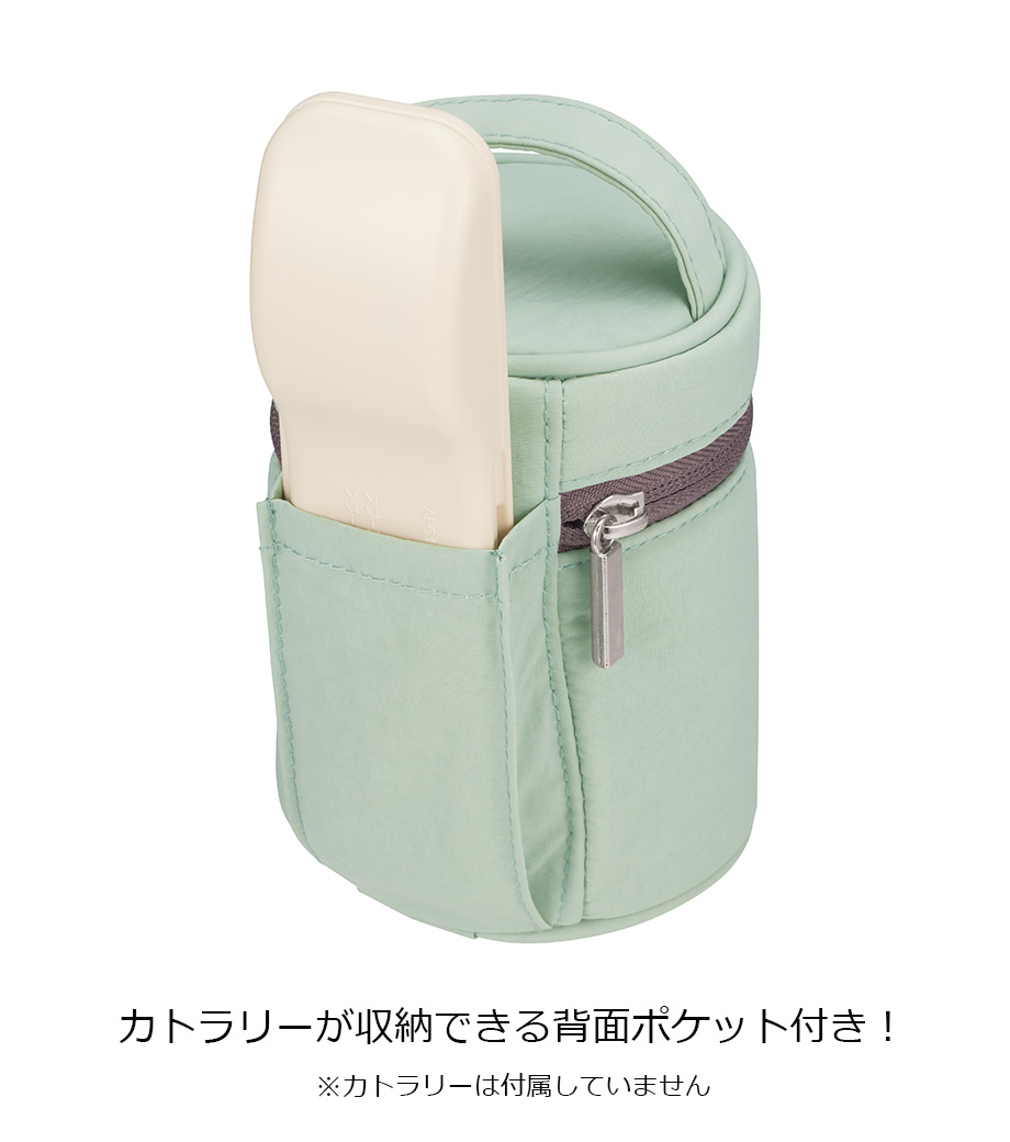 真空断熱スープジャー 0.2L専用の持ち運びポーチです。通勤・通学やおでかけのランチにぴったり!ジャーとセットで使えば保温効果がさらにアップし、食べごろ温度を長時間キープできます。側面にはカトラリーが入る便利なポケット付き。洗濯機で洗えるのも嬉しいですね。細部まで使いやすさにこだわった「THERMOS」アイテムです。