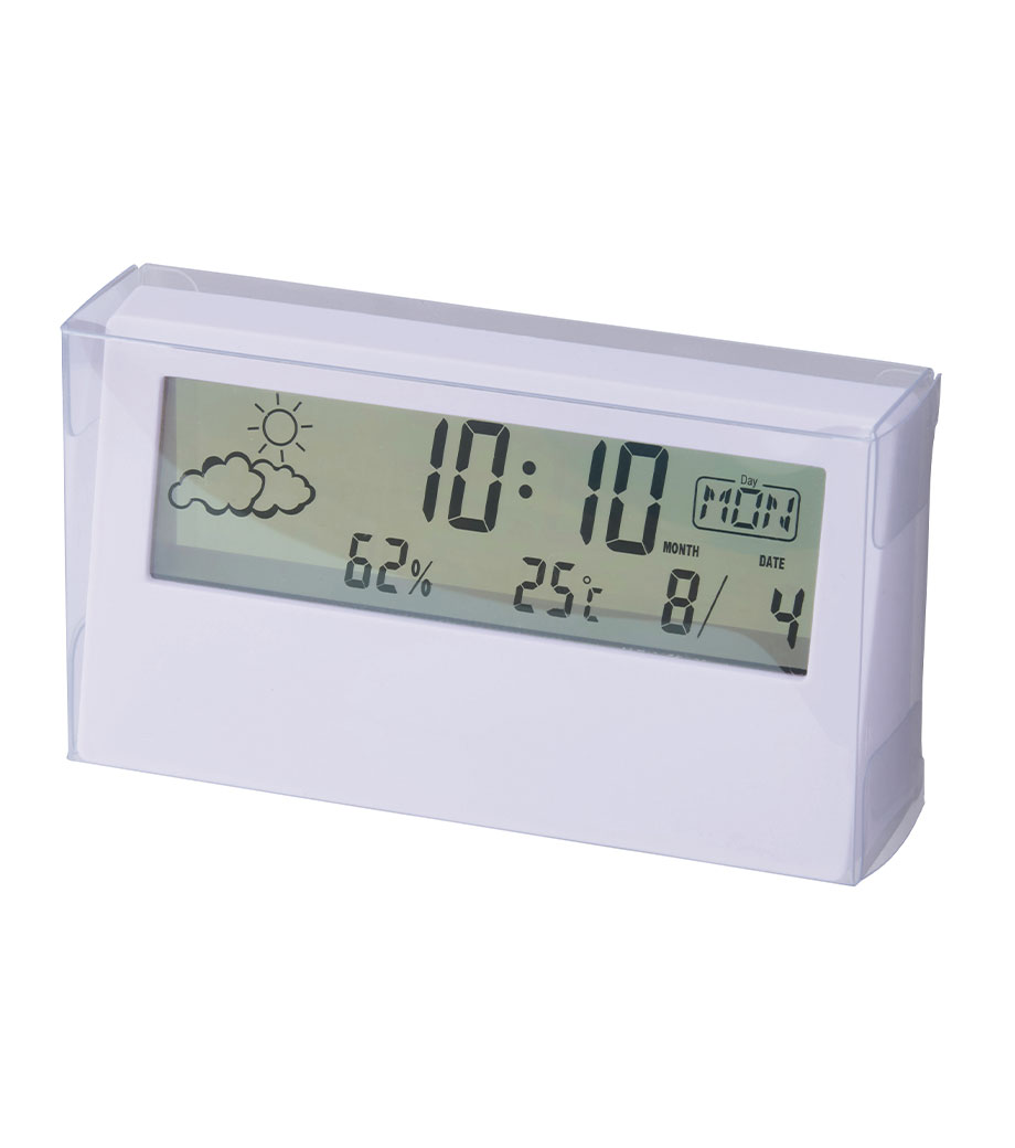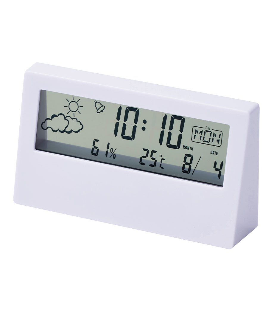 「カレンダークロック」は、100年カレンダー・カウントダウンタイマー・スヌーズ機能付アラーム・温度表示・誕生日のお知らせ・LEDバックライトの機能を備えた卓上時計です。シンプルでスリムなホワイトボディは、どんな空間にもすっきりマッチします。