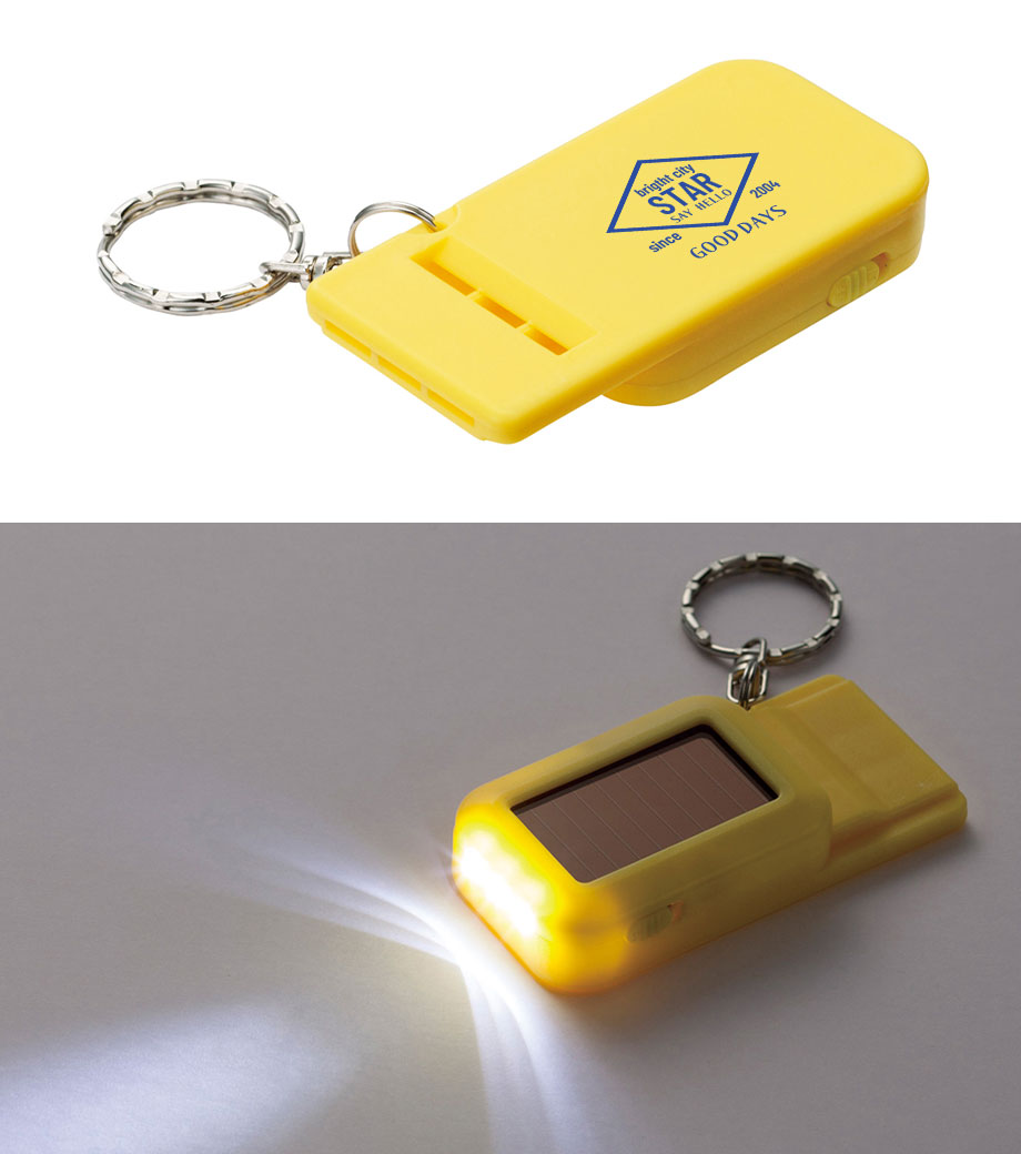 ホイッスルとライトが1つになった便利なアイテム。夜道を歩く時は防犯グッズとして活躍。カバンに付けておけば、万が一の災害時には防災グッズにも。電池交換が必要ない、ソーラー電池仕様です。