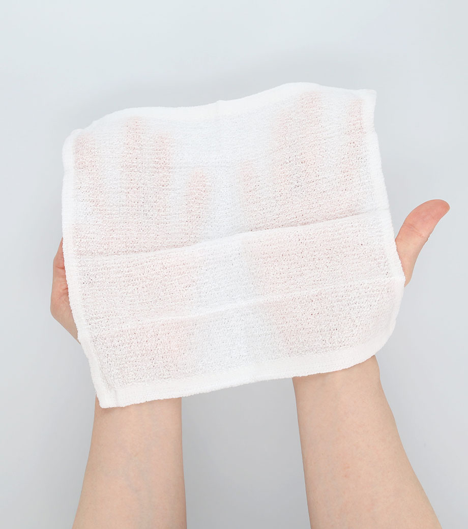 水でよく濡らして広げればあっという間にフェイスタオルに。びっくりするほどコンパクトなので手荷物に忍ばせておけばいざというときに頼りになります。気軽に持ち歩けるサイズで持ち歩きにも保管にもかさばりません。