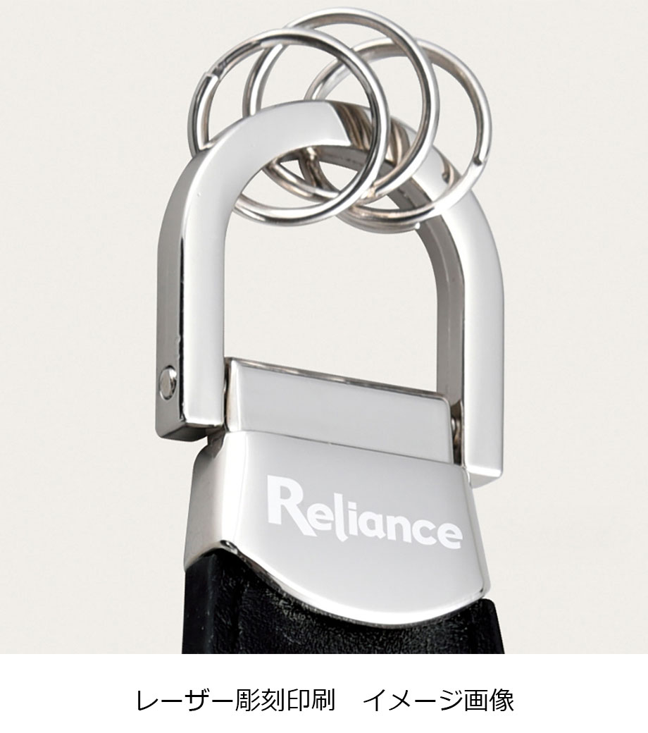 レザーベーシックキーホルダーはなめらかな牛革とメタリックシルバーを組み合わせた、上品なキーホルダーです。名入れはオリジナルの1色印刷ができます。