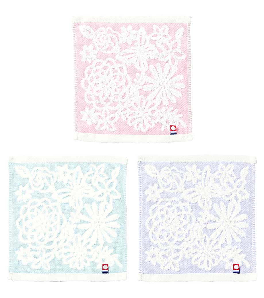 厳しい基準をクリアした今治ブランドのハンドタオル。ふんわりやわらかな肌触りと優れた吸水性を兼ね備えた、もらってうれしいアイテムです。上品な花柄ときれいな色彩が目を引き、タオルを使うたびに心を癒してくれます。上質な日本製なので安心してご使用いただける逸品。ブルー・イエロー・グリーンの3色取り混ぜでお届けします。