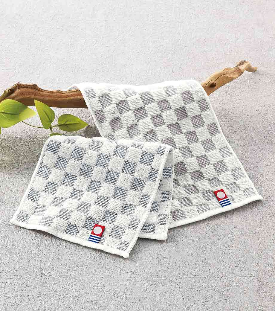 優れた吸水力が魅力の今治タオル。フェイスタオルとウォッシュタオルの実用的な2枚セットです。ヘム部分に上品な糸を織り込んだ市松模様が、清潔感のあるホワイトカラーにさりげない華やかさを添えます。
