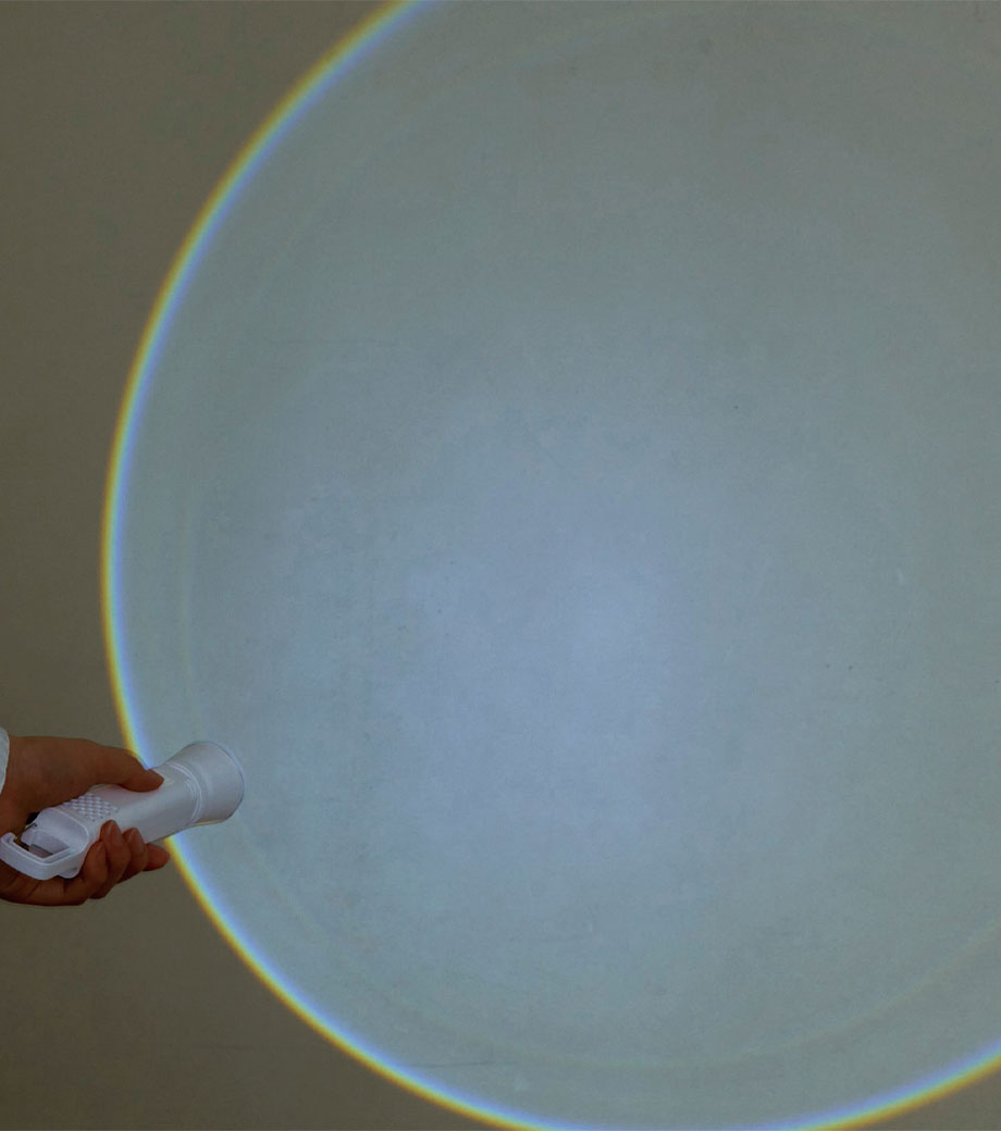 立てておけるラジオ付トーチライトは、適度な太さで持ちやすいサイズ感の懐中電灯。円筒形で自立するので、紐をかけるフックがない場所にも置いておけます。ベッドサイドなどにも馴染みやすいシンプルなデザインが魅力です。ラジオは万が一の時も災害情報を受信しやすいワイドFM仕様。個人での防災意識が高まる昨今、年代性別問わず喜ばれるノベルティです。