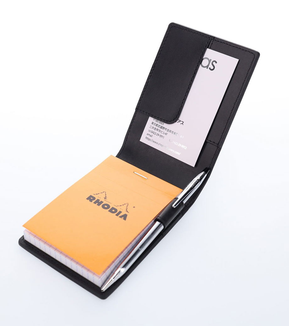 シンプルなカバーに企業ロゴが映え、営業用ノベルティとしてPR効果も抜群。オリジナル名入れは30個からの小ロット対応可能です!