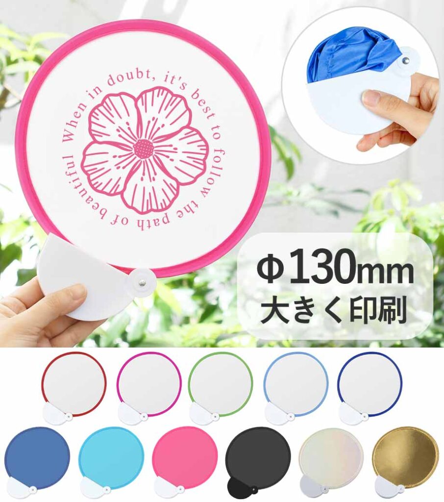 フォールディングファンは、折りたたみ式のうちわ。手のひらサイズにして収納できるので、持ち運びに便利です。