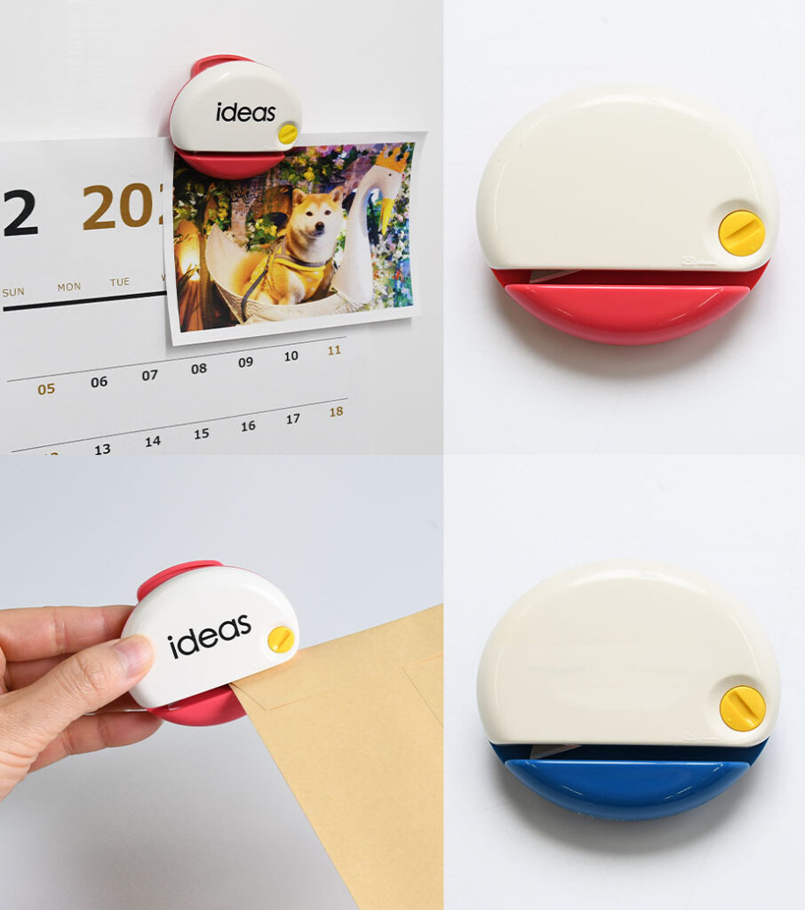スパットクリップは、レターカッター付きのマグネットクリップ。開封した大事な郵便物を、そのまま冷蔵庫などに貼っておける便利グッズです。クリップは大きめで挟みやすく使い勝手抜群。レターカッターは上の紙一枚だけを切るので、切りカスを出さずに封筒を開けられます。コロンとした丸みのあるフォルムが可愛らしいです。