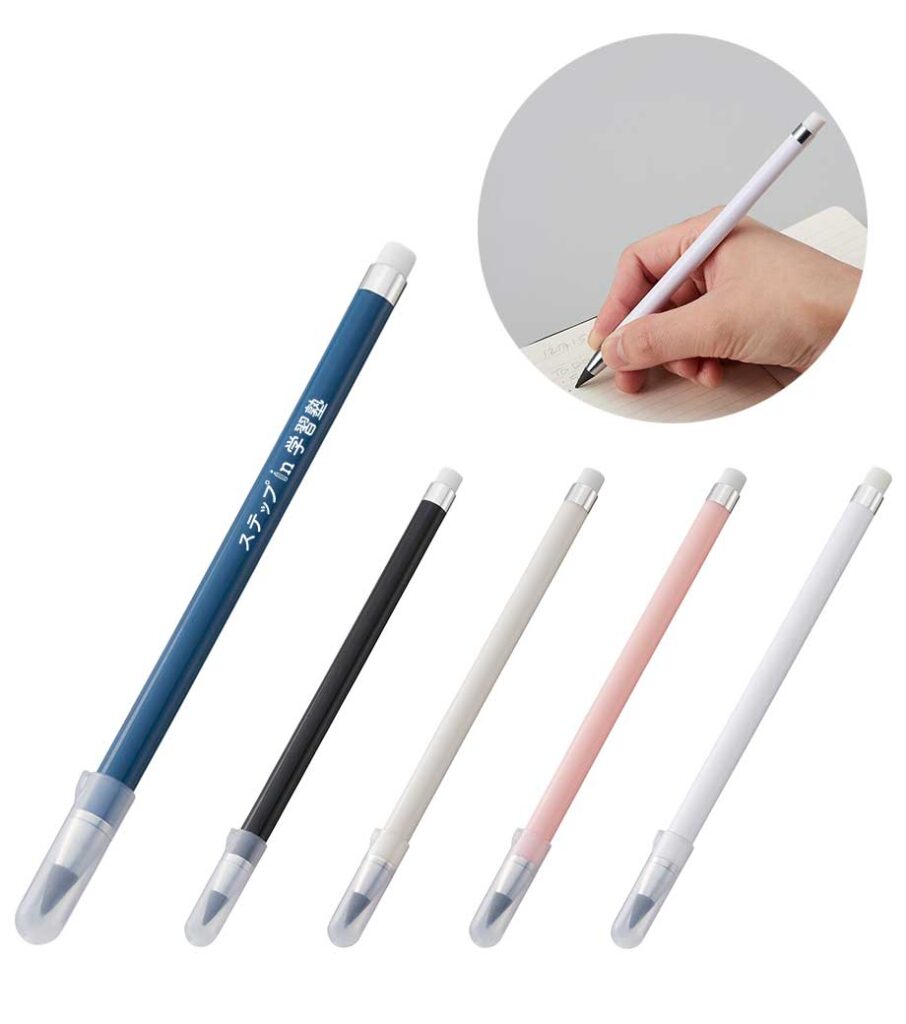 先端を削らず書き続けられるスリム形状の鉛筆です。削りカスが出ず、ゴミ削減に繋がります。再生ABSを使用したエコで激安な筆記具ノベルティです。書き味は一般的な鉛筆とほとんど変わりません。ペン先を保護してくれるキャップも付いています。