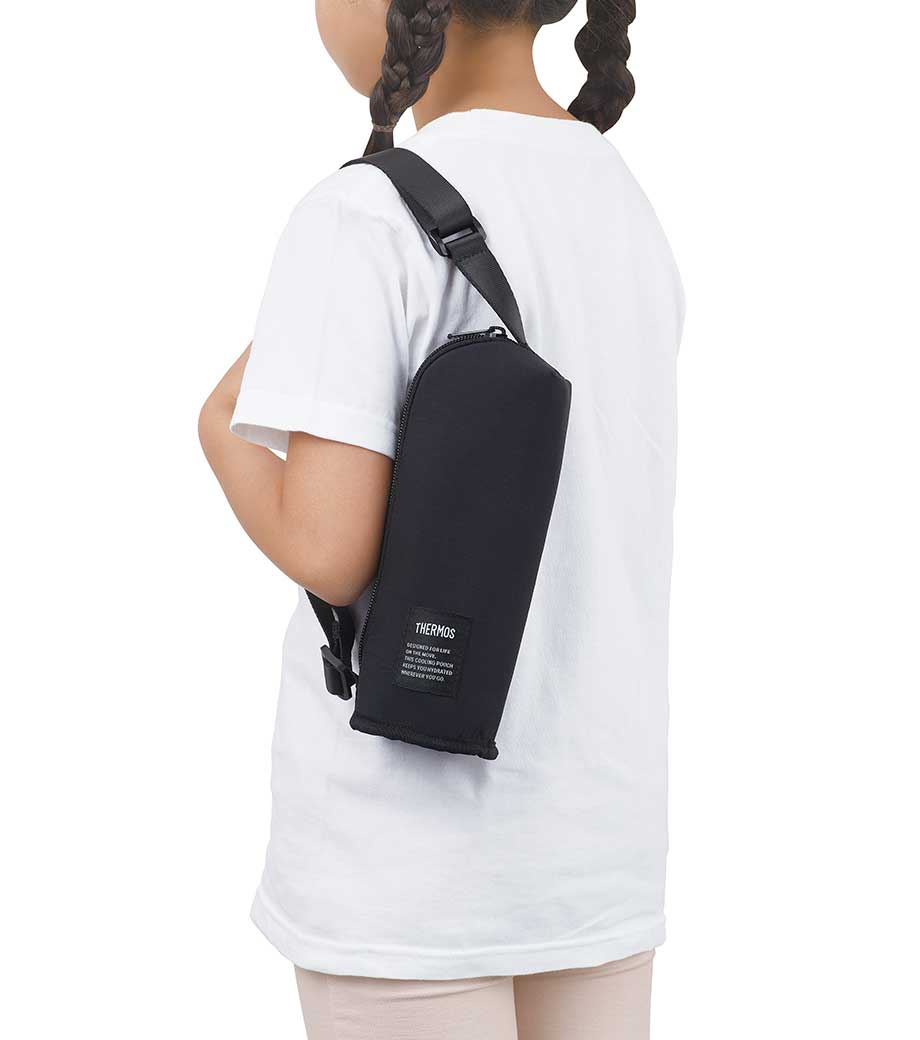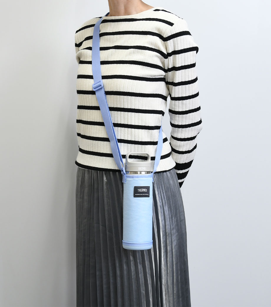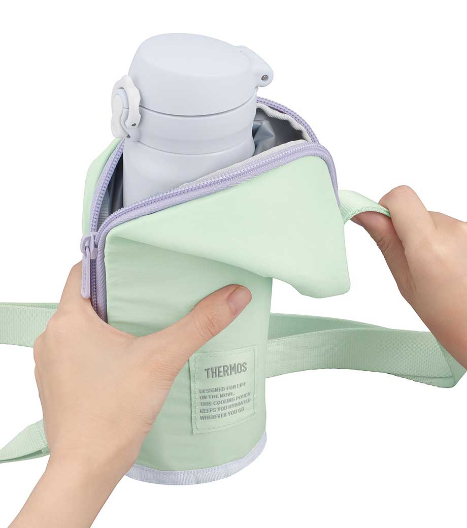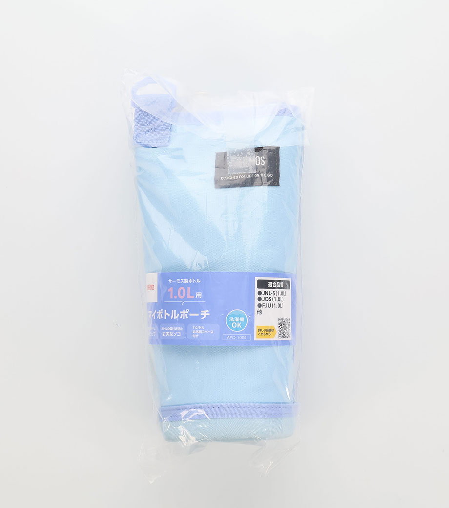 500mlのペットボトルが入るボトルカバーです。ハンドルに付いている取り外しできるバックルがポイント。カバンの持ち手や、リュックに取り付けて持ち運べます。カバンの中での結露対策にも〇。