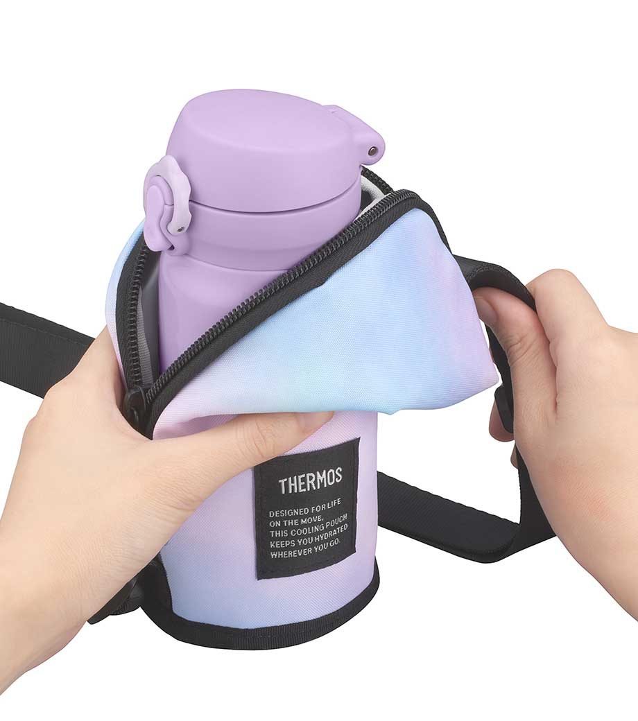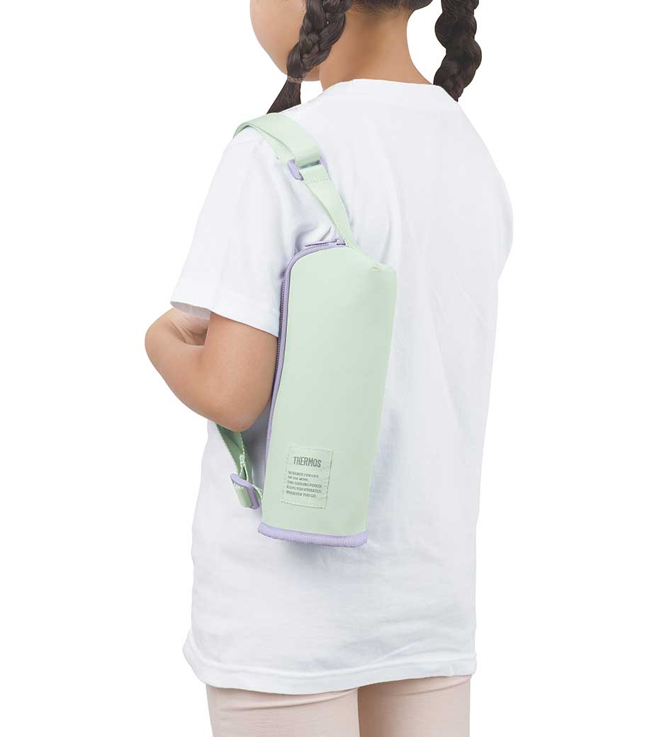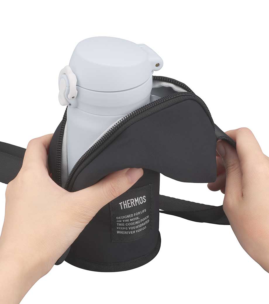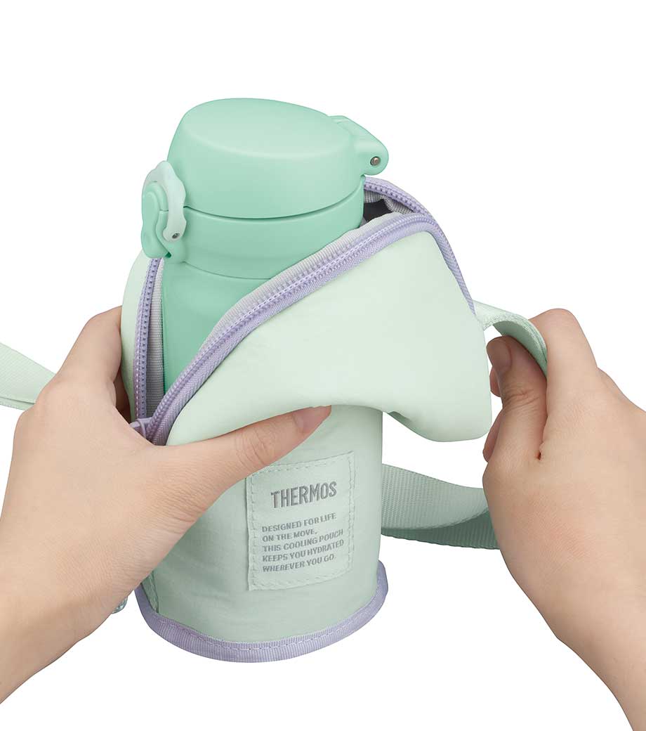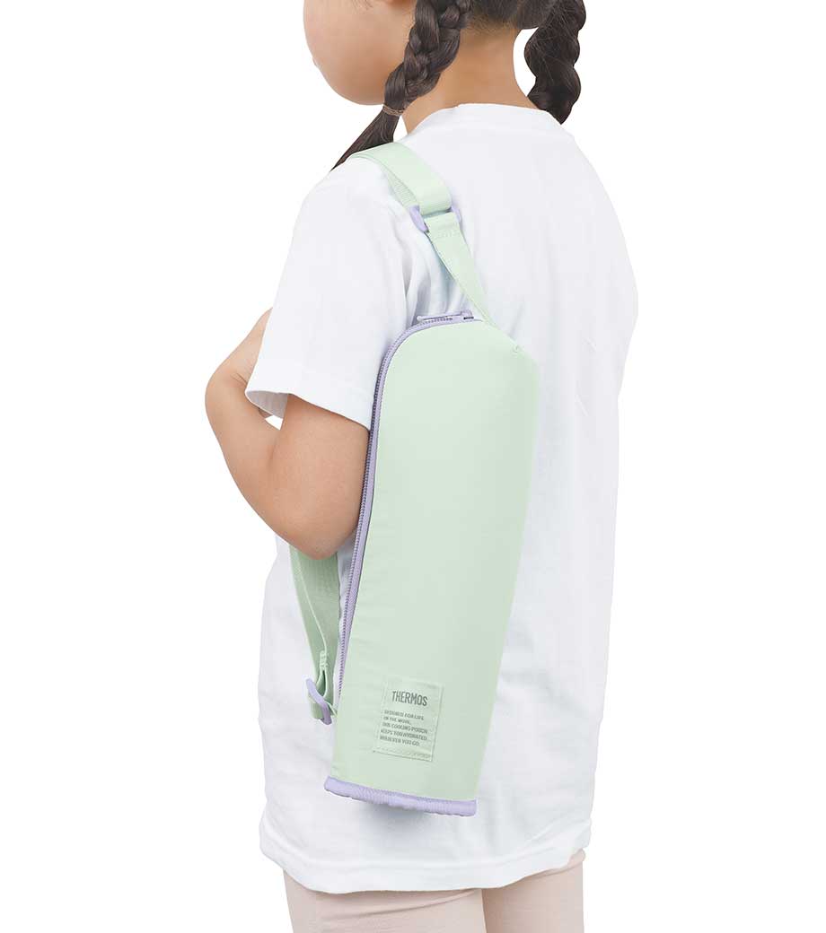 500mlのペットボトルが入るボトルカバーです。ハンドルに付いている取り外しできるバックルがポイント。カバンの持ち手や、リュックに取り付けて持ち運べます。カバンの中での結露対策にも〇。