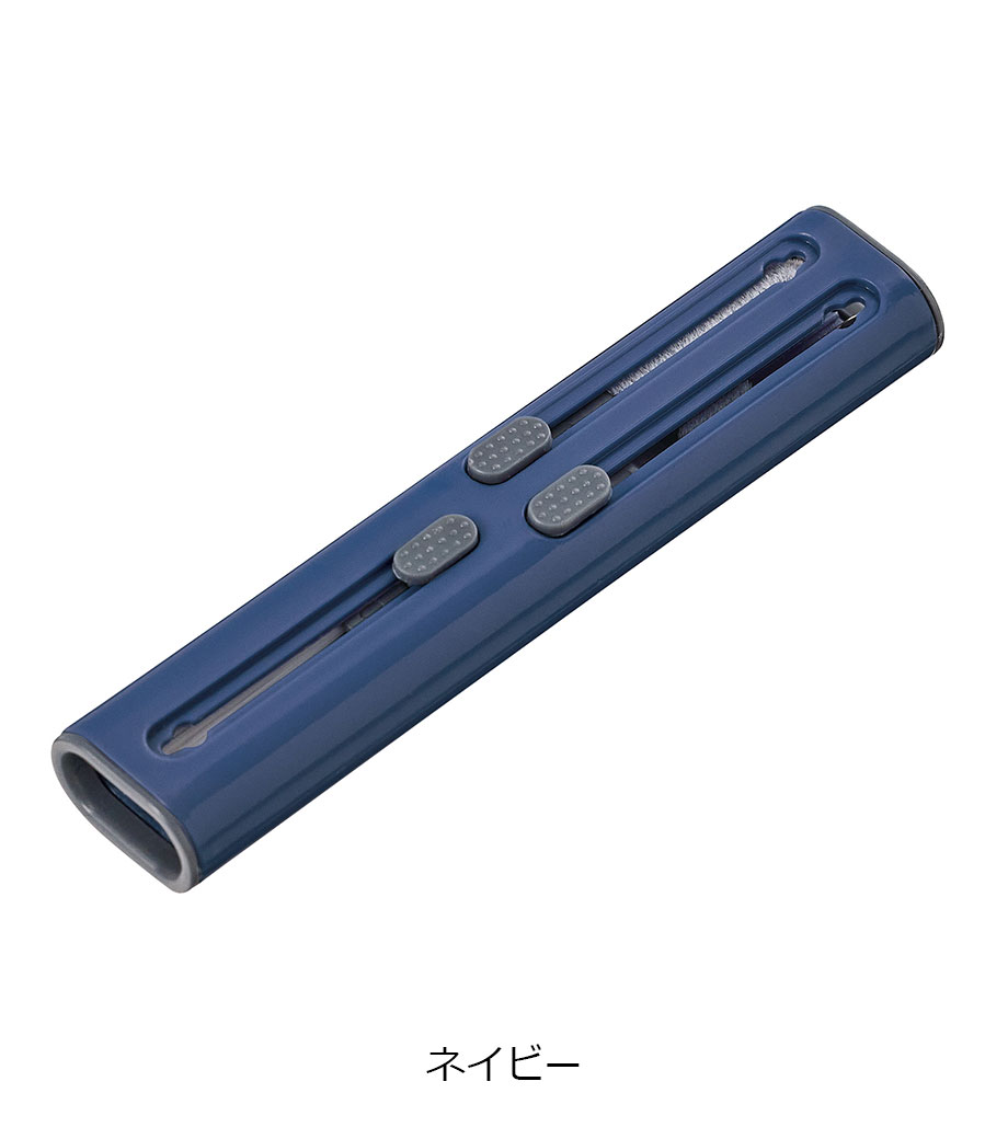 手のひらサイズで扱いやすいコンパクトなお掃除アイテムです。ボタンをスライドするだけでブラシがスッと出てきて、キーボードやデスク周りの細かい隙間のホコリも手軽にひと掃き。柔らかな毛先でやさしくホコリや汚れを取り除けます。
