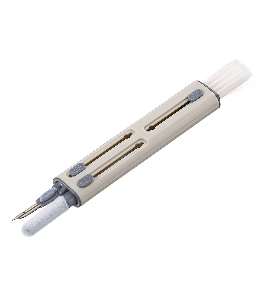 スマホや電子機器のお掃除に便利!? ➀ほこりやゴミを絡めとるスポンジ②メッシュ部分や角にたまった汚れがとれる金属スティック③細かい汚れを掻き出す高密度ミニブラシ④キーボードのすき間を掃除できるクリーニングブラシの4つの機能がコンパクトに一体化。デスクやカバンに1つあれば役立つこと間違いなしです。