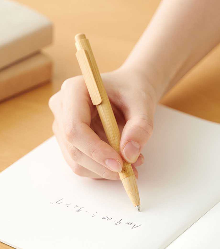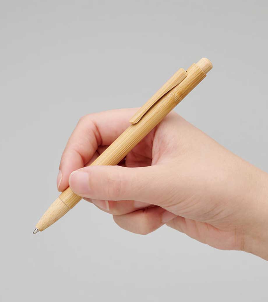 再生樹脂やバイオマスプラスチックなど、エコ素材で作られているのが特徴。SDGsの取り組みに貢献できるボールペンです。