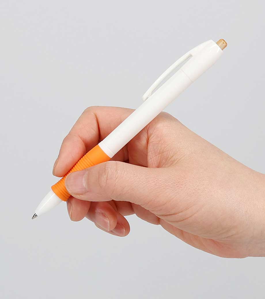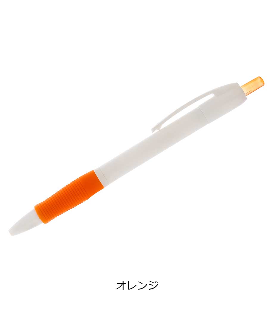 超低単価でコストパフォーマンス抜群のノック式ボールペンです。ペン軸が白色なので、ロゴや企業名などの名入れがしっかり目立つのが魅力。滑らかな書き心地と手にフィットするラバーグリップで、実用性にも優れています。カラフルなラインナップは、キャンペーンやイベント、セミナーなどのバラマキ用ノベルティとして目を引きますね。
