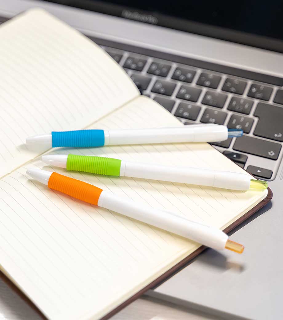 消えるインクで人気のフリクションやにじみにくい油性インク、滑らかな書き味の水性ゲルインクなど、様々なインクのボールペンをご用意。ニーズに合わせたノベルティが制作できます。