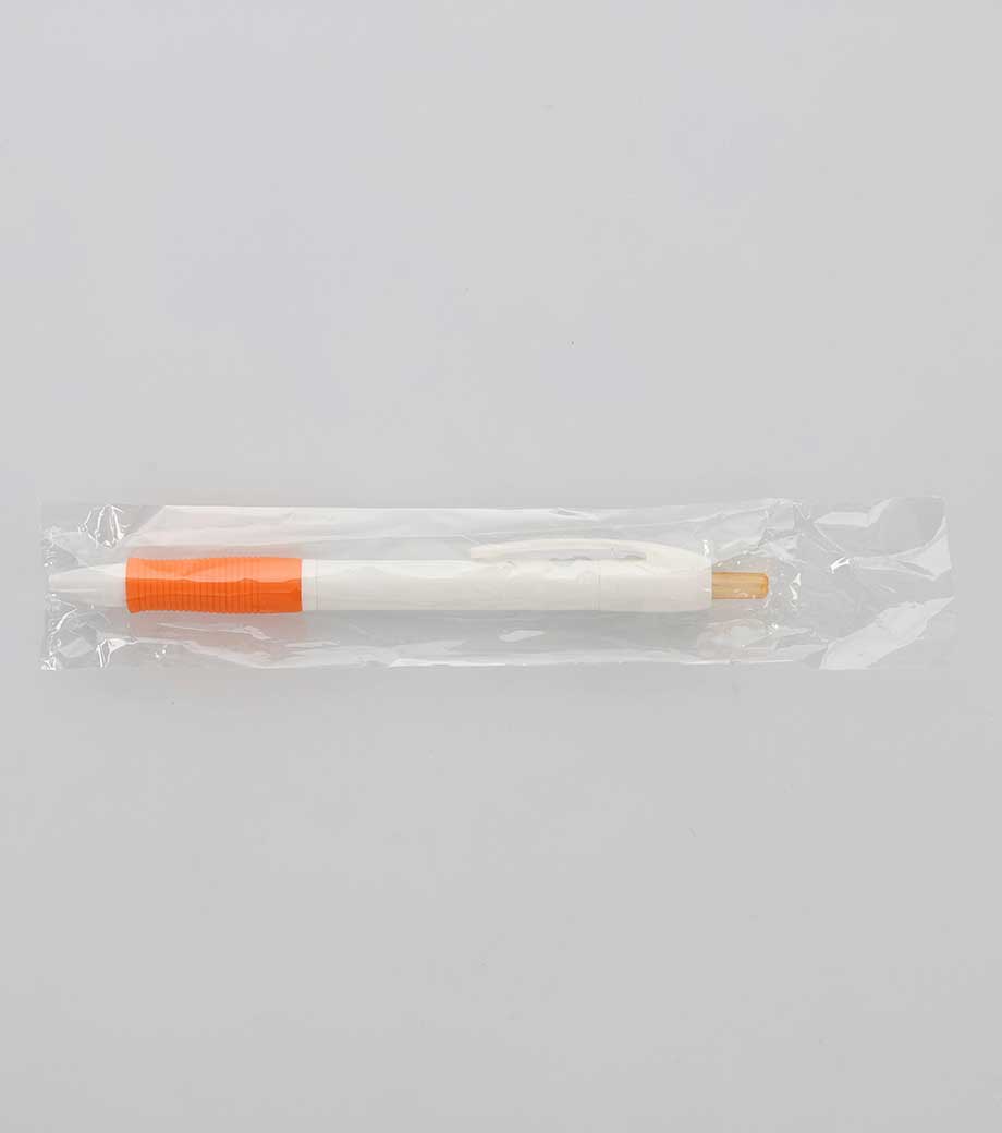 安価で配布しやすいため、説明会や展示会のノベルティに最適。ボディにはシンプルな1色印刷や、目を引くフルカラー印刷も可能です。廃棄物削減や合成樹脂の使用量を抑えるアップサイクル商品として、環境意識の高い企業やイベントにもぴったりの一本です。