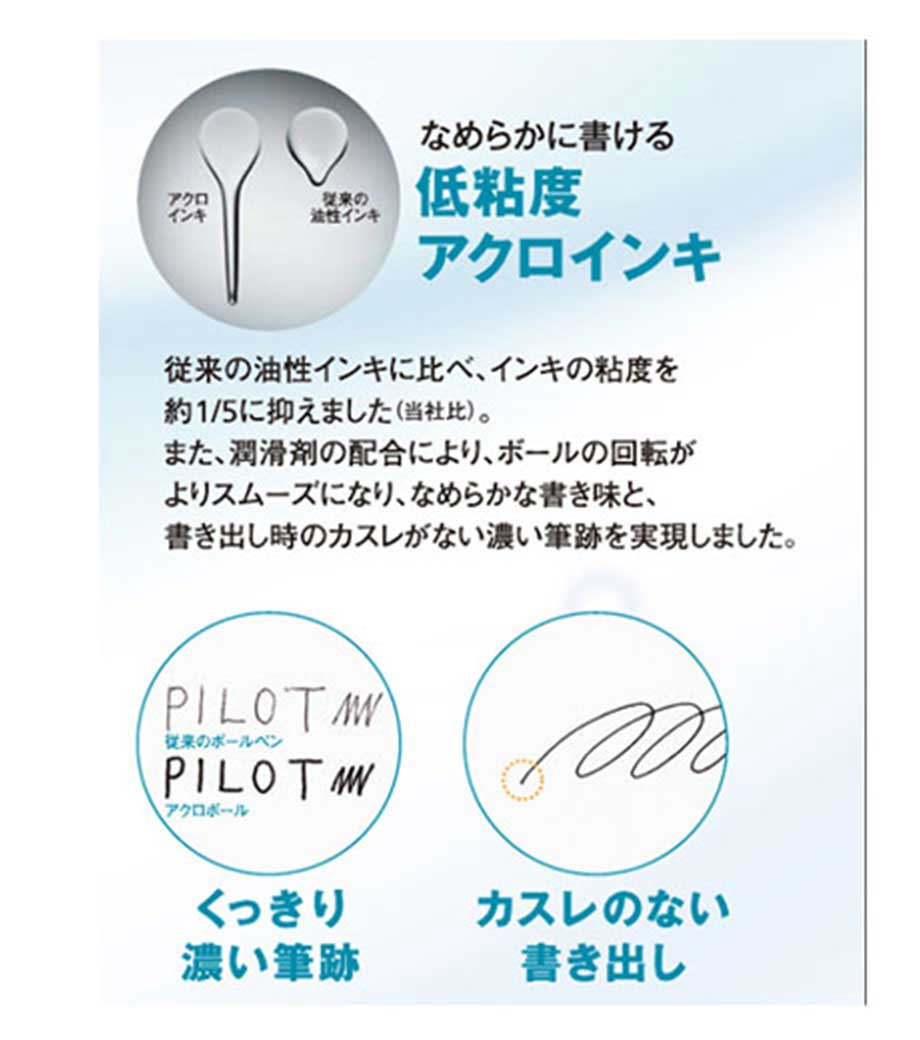 パイロット アクロボール Tシリーズ (0.5極細)はパイロット社独自のアクロインキを搭載。なめらかに濃く書けるのが特長の油性ボールペンです。グリップはやわらかく滑りにくい材質のラバーを使用し、凸凹のタイヤパターンを施しているのでしっかり握れます。