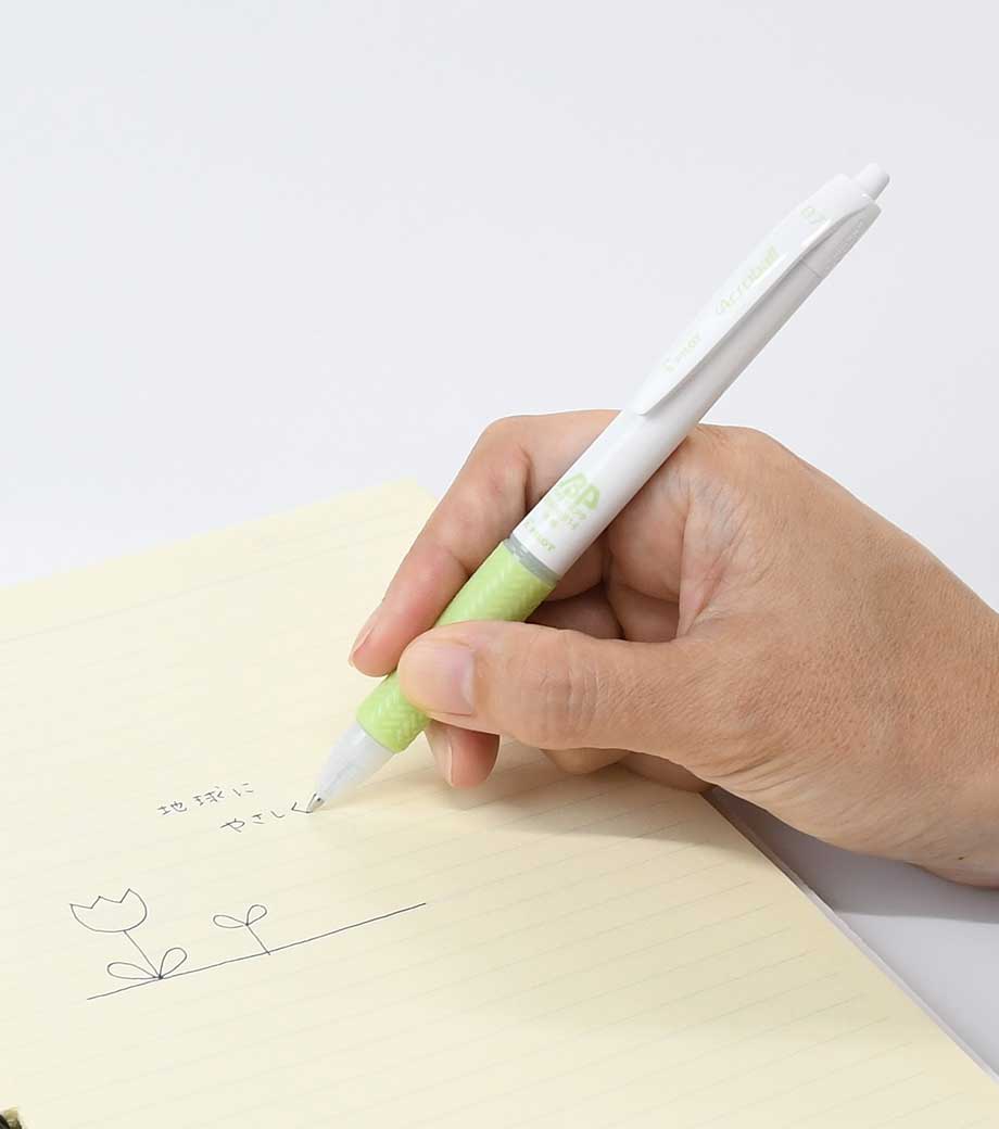 書き味はとても滑らか。格子状の「グリッドグリップ」が指先をホールドしてくれます。仕事などさまざまなシーンで使いやすく、力の弱い人でも安定した筆記ができます。