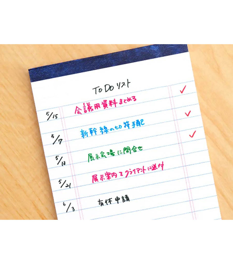 それもそのはず、なめらかなタッチの繊維ペン先で、ほどよい筆記線の幅は0.8ミリ。カレンダーのコマやノートの罫線でもはみ出ず、するすると気持ちの良い書き心地。スタッフも愛用する絶対おすすめ品です。