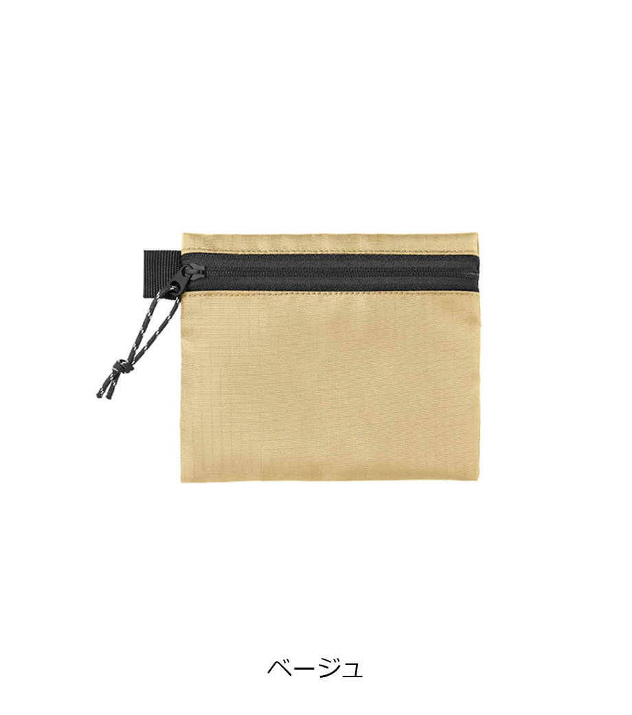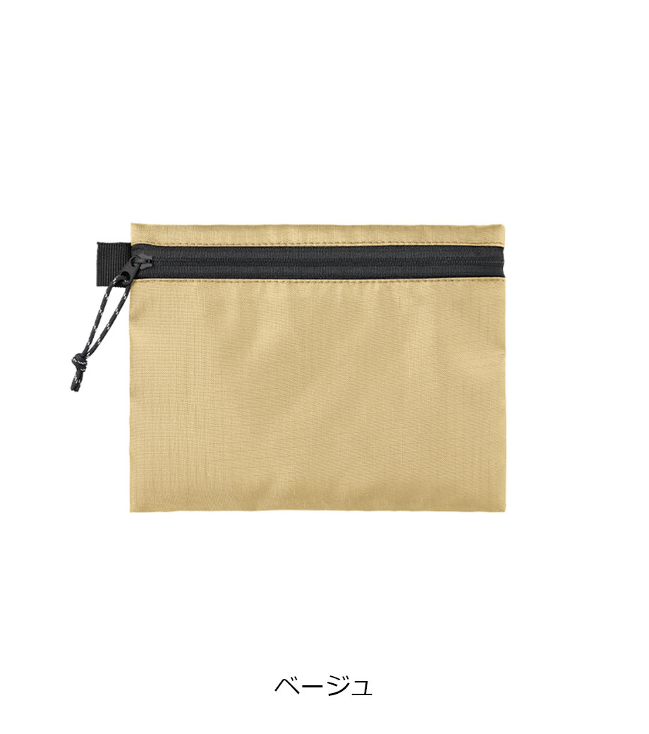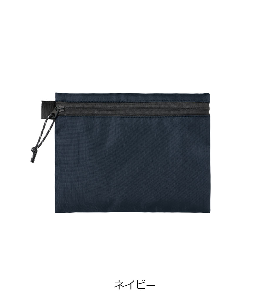 スタイリッシュでかさばらないフラットタイプのポーチです。耐久性の高いリップストップ素材を採用。ファスナーは凹凸の少ない裏使いで、洗練された印象を与えます。イヤホンやカード、コインなどの小物整理に大活躍。便利なサイドループ付きです。