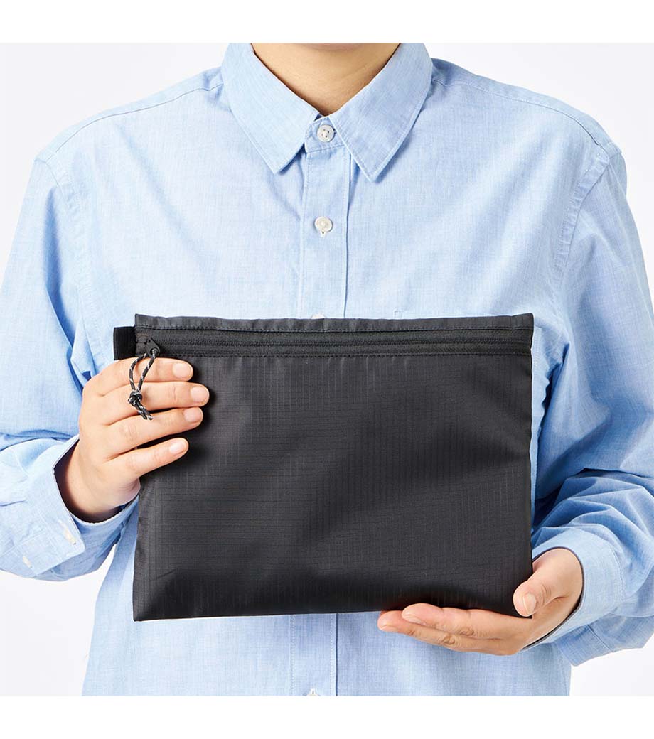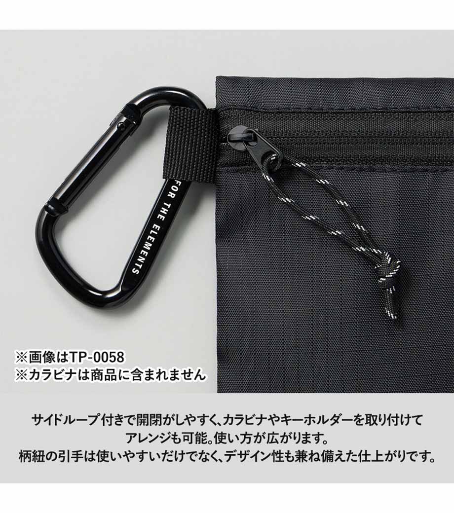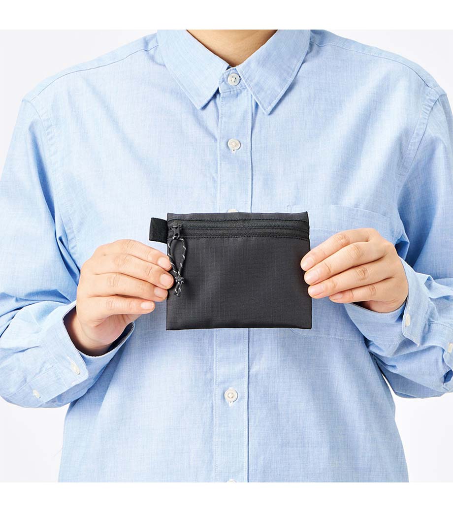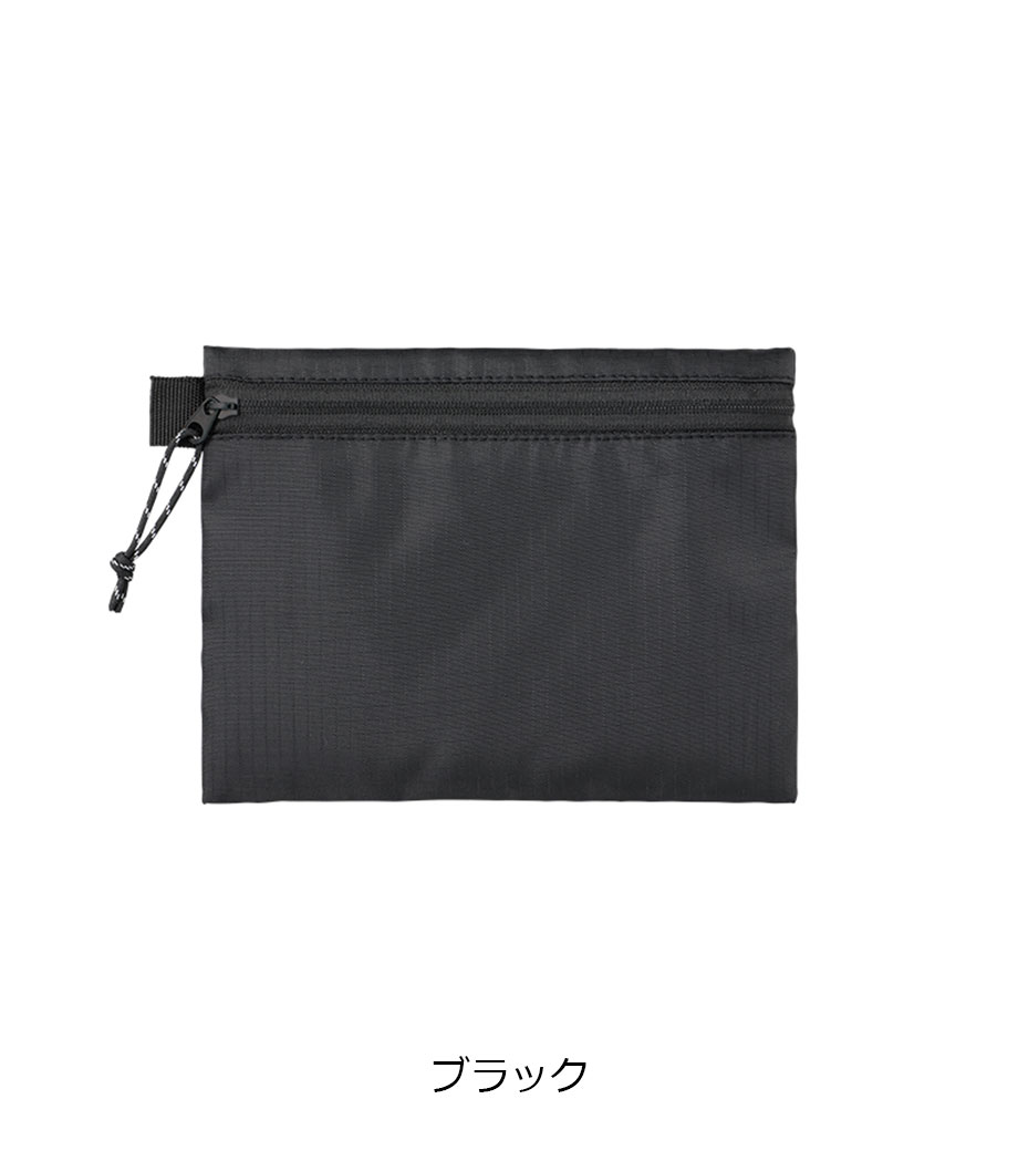 スタイリッシュでかさばらないフラットタイプのポーチです。耐久性の高いリップストップ素材を採用。ファスナーは凹凸の少ない裏使いで、洗練された印象を与えます。イヤホンやカード、コインなどの小物整理に大活躍。便利なサイドループ付きです。