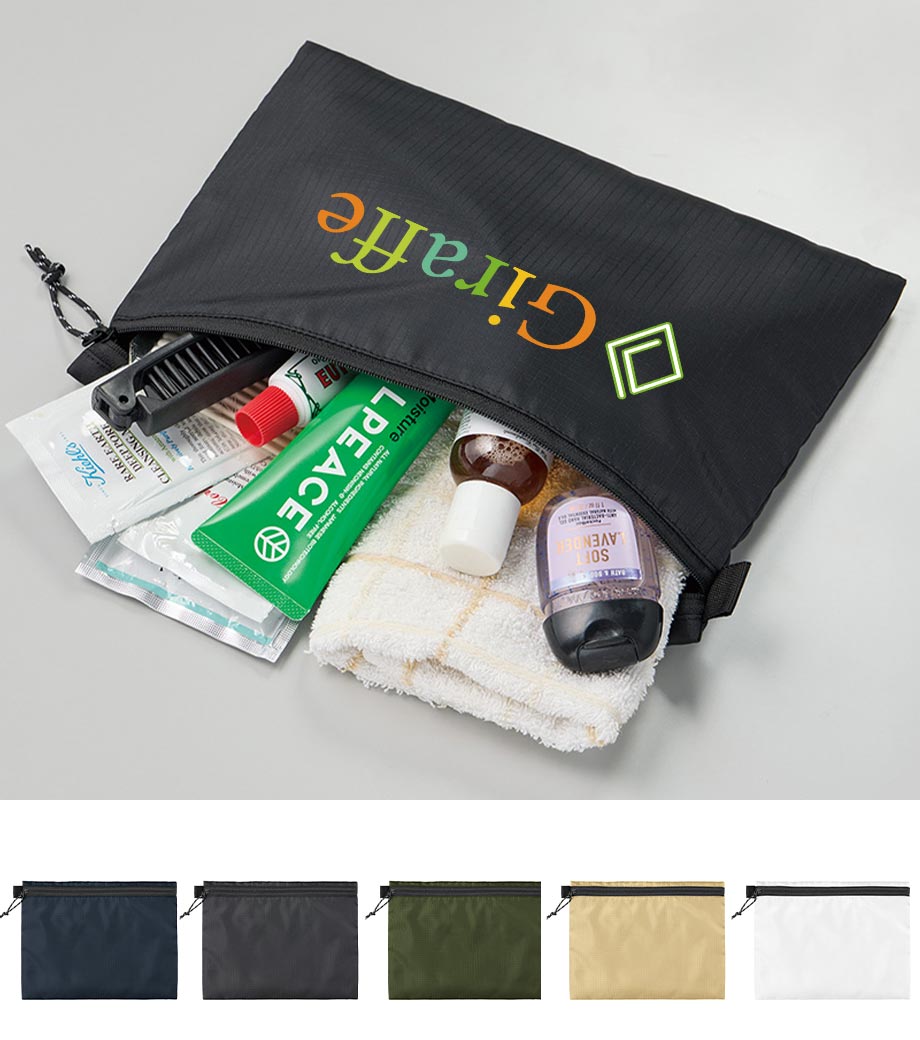 ポーチは誰もが使える収納グッズ。ファスナーで簡単に開閉でき、コスメやエチケット用品など出先で取り出す小物の収納に便利です。イベントの来場特典の贈り物にぴったり!