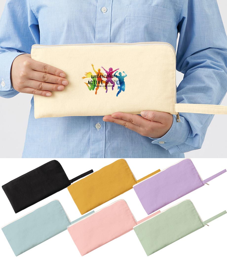オーガニックコットンや再生コットンなど、エコ素材で作られたキャンバスポーチも豊富です。環境意識を高めるメッセージをプリントすれば、SDGsの取り組みに貢献できるオリジナルグッズになります。