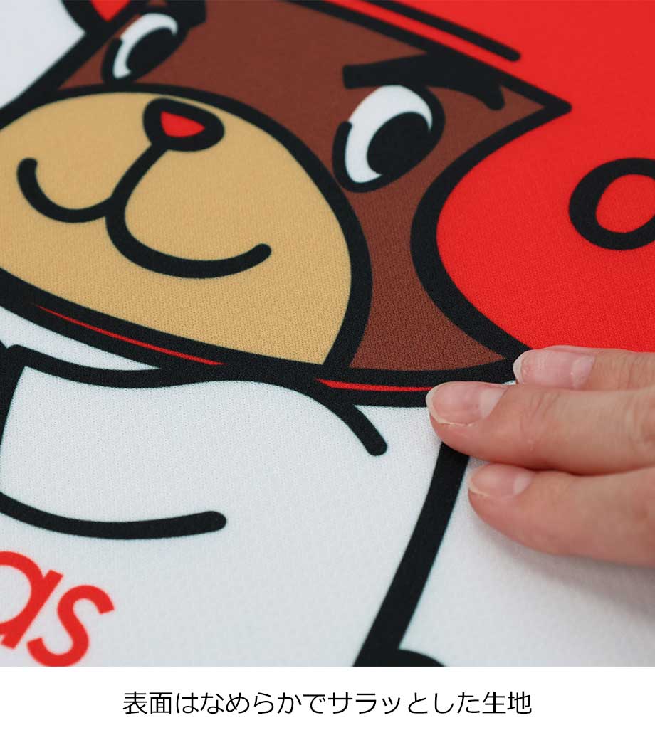 1色からフルカラーでロゴや企業名のプリントが可能です。ビジネスシーンにも馴染むので、企業展示会や地域イベントのスタッフウェアなどにいかがでしょうか。