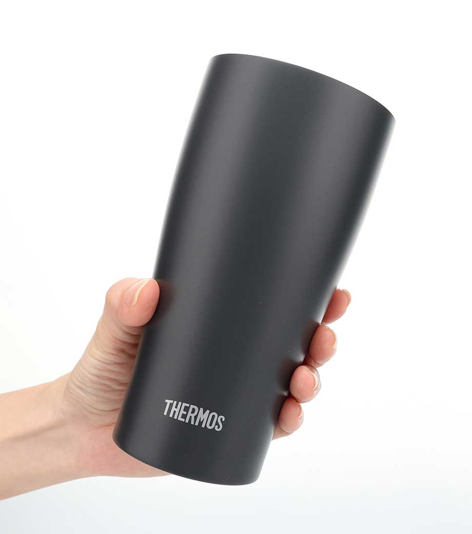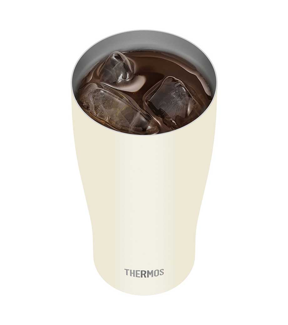 真空断熱構造で、温度をしっかりキープ。蓋と一体化したハンドルつきのサーモス(thermos)製ステンレスタンブラーです。広い飲み口で洗いやすく、氷もそのまま入れられます。容量は420mlで、普段使いにちょうどよいサイズ感。