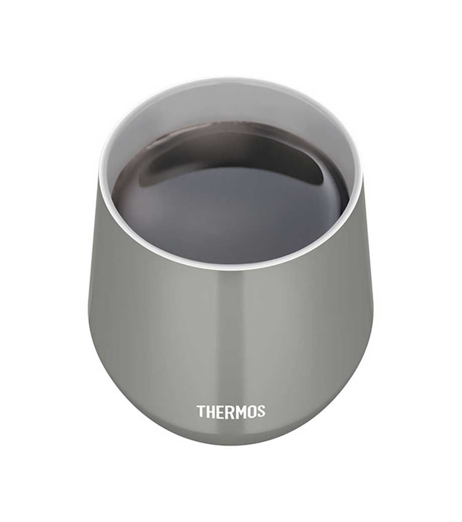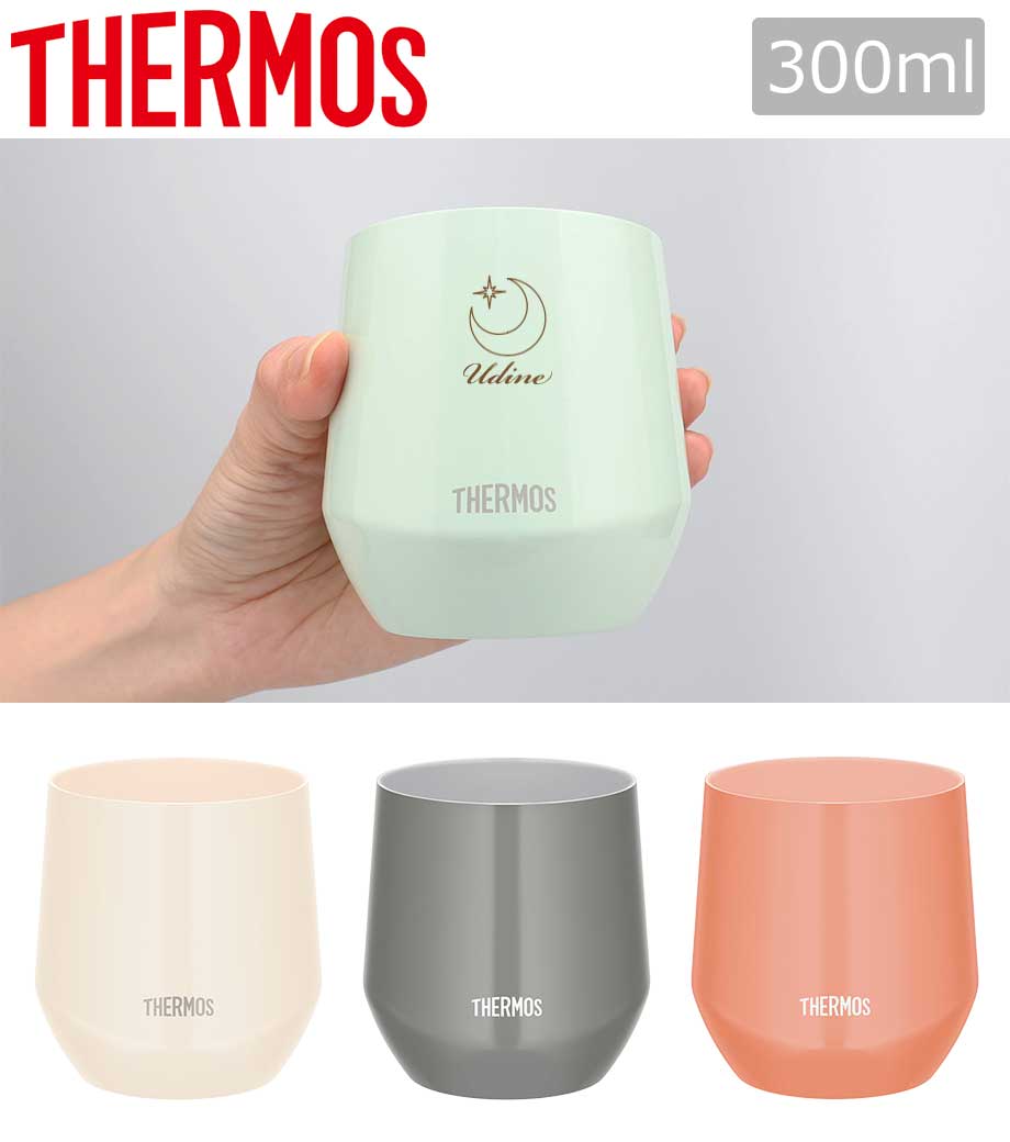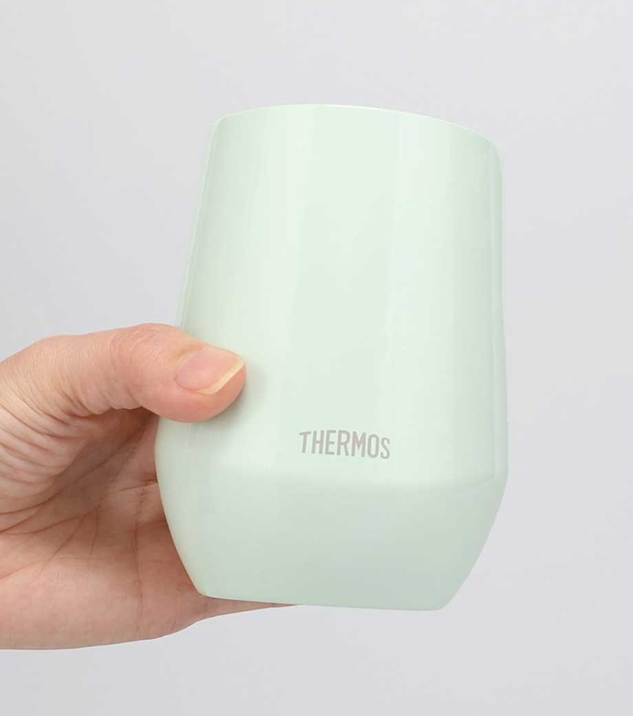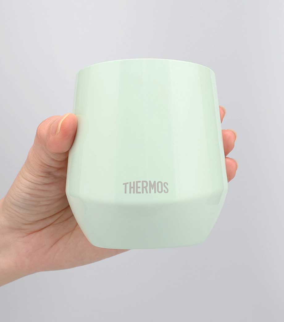 蓋と一体化したハンドルつきのサーモス(thermos)製ステンレスタンブラーです。真空断熱構造で、温度をしっかりキープ。一般的なマグカップ1杯分と同じ容量320mlで、日常使いにぴったり。広い飲み口で洗いやすく、氷もそのまま入ります。