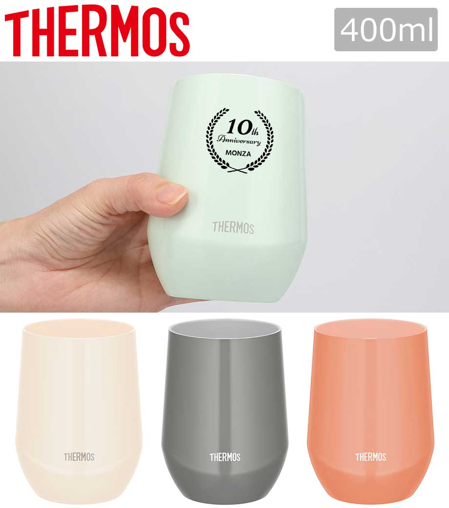 サーモス 真空断熱タンブラー 400ml(JDP)は1色印刷とレーザー彫刻で名入れが可能。ロゴや社名をデザインしてオリジナル名入れの記念品を作成できますよ。